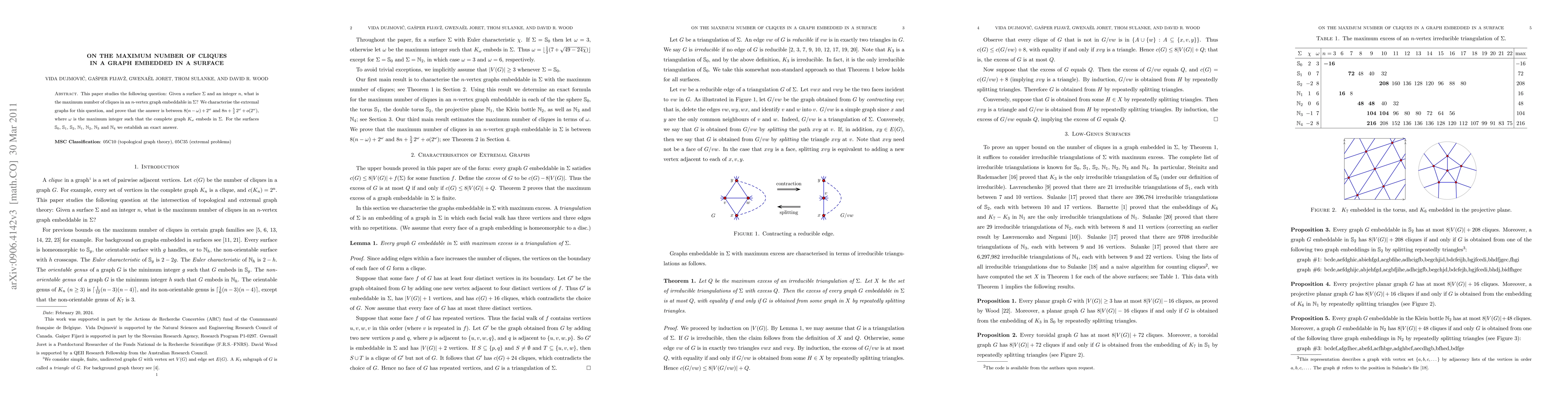 This paper studies the following question: Given a surface $\Sigma$ and an integer $n$, what is the maximum number of cliques in an $n$-vertex graph embeddable in $\Sigma$? We characterise the extremal graphs for this question, and prove that the answer is between $8(n-\omega)+2^{\omega}$ and $8n+{3/2} 2^{\omega}+o(2^{\omega})$, where $\omega$ is the maximum integer such that the complete graph $K_\omega$ embeds in $\Sigma$. For the surfaces $\mathbb{S}_0$, $\mathbb{S}_1$, $\mathbb{S}_2$, $\mathbb{N}_1$, $\mathbb{N}_2$, $\mathbb{N}_3$ and $\mathbb{N}_4$ we establish an exact answer.