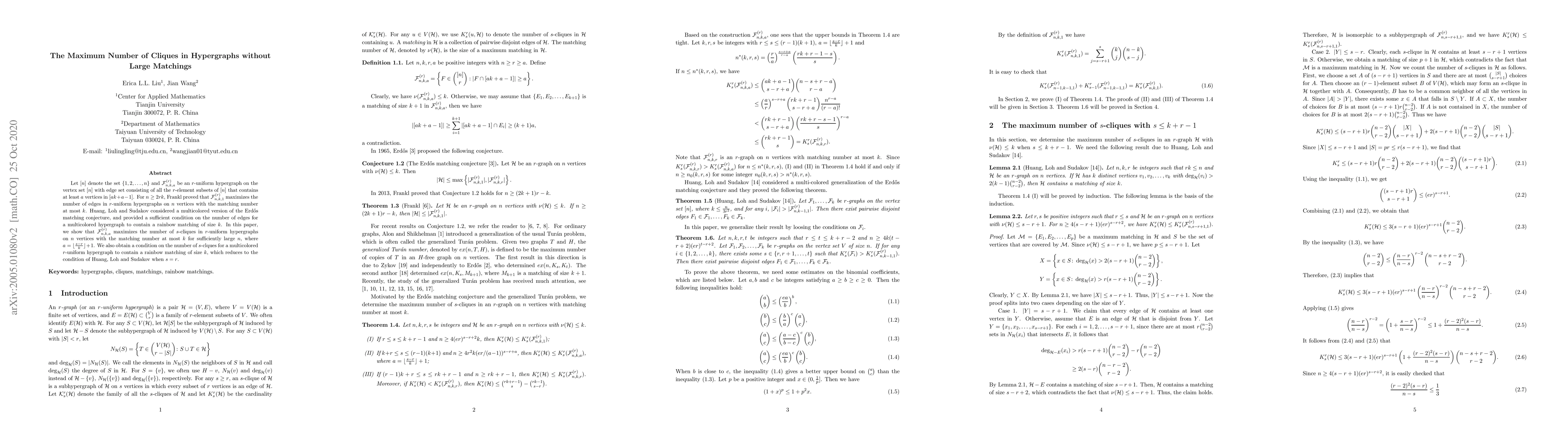Let $[n]$ denote the set $\{1, 2, \ldots, n\}$ and $\mathcal{F}^{(r)}_{n,k,a}$ be an $r$-uniform hypergraph on the vertex set $[n]$ with edge set consisting of all the $r$-element subsets of $[n]$ that contains at least $a$ vertices in $[ak+a-1]$. For $n\geq 2rk$, Frankl proved that $\mathcal{F}^{(r)}_{n,k,1}$ maximizes the number of edges in $r$-uniform hypergraphs on $n$ vertices with the matching number at most $k$. Huang, Loh and Sudakov considered a multicolored version of the Erd\H{o}s matching conjecture, and provided a sufficient condition on the number of edges for a multicolored hypergraph to contain a rainbow matching of size $k$. In this paper, we show that $\mathcal{F}^{(r)}_{n,k,a}$ maximizes the number of $s$-cliques in $r$-uniform hypergraphs on $n$ vertices with the matching number at most $k$ for sufficiently large $n$, where $a=\lfloor \frac{s-r}{k} \rfloor+1$. We also obtain a condition on the number of $s$-clques for a multicolored $r$-uniform hypergraph to contain a rainbow matching of size $k$, which reduces to the condition of Huang, Loh and Sudakov when $s=r$.