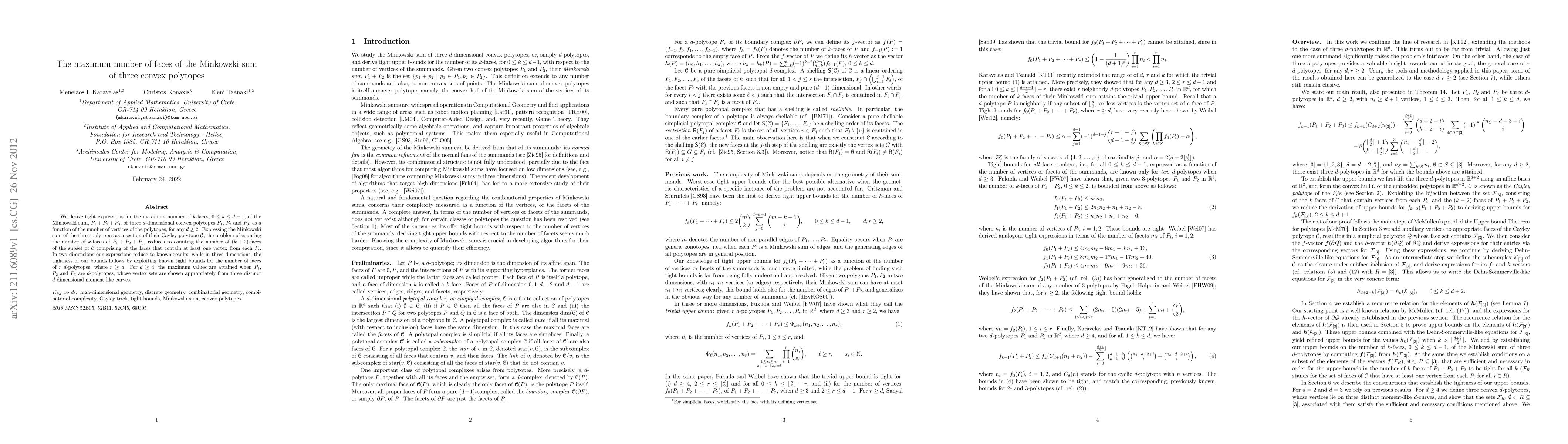 This paper derives tight expressions for the maximum number of $k$-faces in the Minkowski sum of three $d$-dimensional convex polytopes, relating it to the number of vertices of the polytopes. It shows that the problem translates to counting $(k+2)$-faces in a specific section of their Cayley polytope, and provides tight bounds for $d \ge 2$.