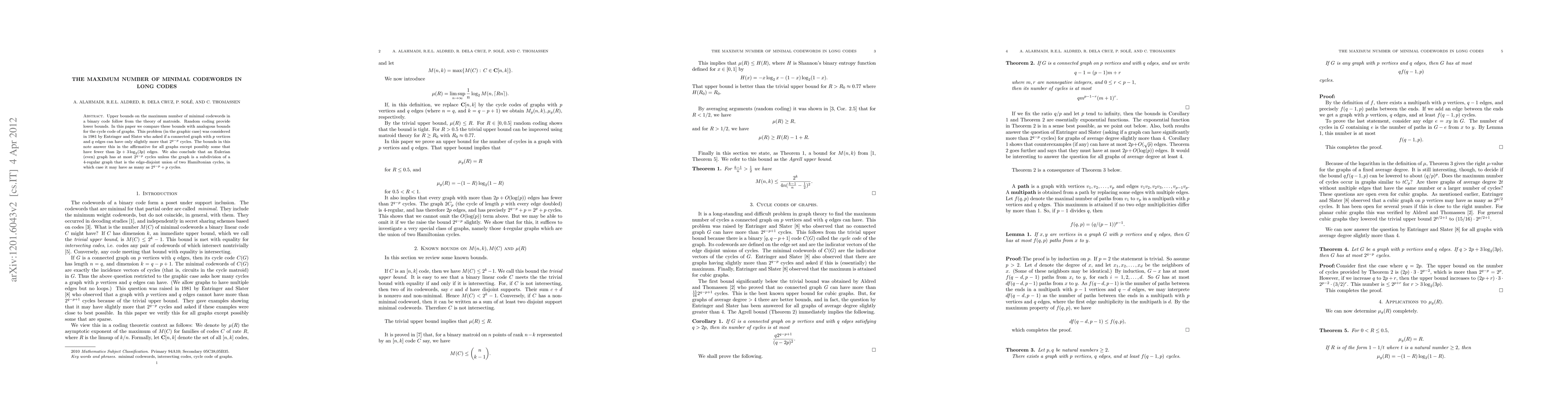 Upper bounds on the maximum number of minimal codewords in a binary code follow from the theory of matroids. Random coding provide lower bounds. In this paper we compare these bounds with analogous bounds for the cycle code of graphs. This problem (in the graphic case) was considered in 1981 by Entringer and Slater who asked if a connected graph with $p$ vertices and $q$ edges can have only slightly more that $2^{q-p}$ cycles. The bounds in this note answer this in the affirmative for all graphs except possibly some that have fewer than $2p+3\log_2(3p)$ edges. We also conclude that an Eulerian (even) graph has at most $2^{q-p}$ cycles unless the graph is a subdivision of a 4-regular graph that is the edge-disjoint union of two Hamiltonian cycles, in which case it may have as many as $2^{q-p}+p$ cycles.