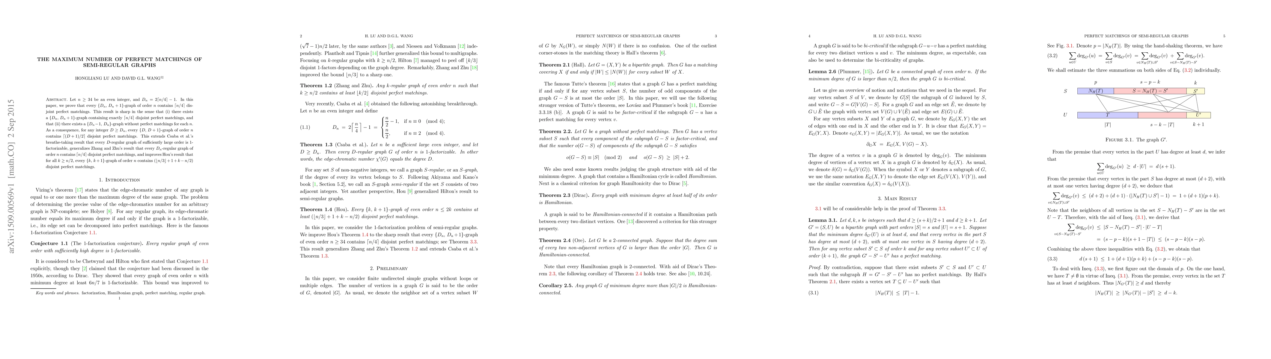 Let $n\ge 34$ be an even integer, and $D_n=2\lceil n/4 \rceil-1$. In this paper, we prove that every $\{D_n,\,D_n+1\}$-graph of order $n$ contains $\lceil n/4 \rceil$ disjoint perfect matchings. This result is sharp in the sense that (i) there exists a $\{D_n,\,D_n+1\}$-graph containing exactly $\lceil n/4 \rceil$ disjoint perfect matchings, and that (ii) there exists a $\{D_n-1,\,D_n\}$-graph without perfect matchings for each $n$. As a consequence, for any integer $D\ge D_n$, every $\{D,\,D+1\}$-graph of order $n$ contains $\lceil (D+1)/2 \rceil$ disjoint perfect matchings. This extends Csaba et~al.'s breathe-taking result that every $D$-regular graph of sufficiently large order is $1$-factorizable, generalizes Zhang and Zhu's result that every $D_n$-regular graph of order $n$ contains $\lceil n/4 \rceil$ disjoint perfect matchings, and improves Hou's result that for all $k\ge n/2$, every $\{k,\,k+1\}$-graph of order $n$ contains $(\lfloor n/3\rfloor+1+k-n/2)$ disjoint perfect matchings.