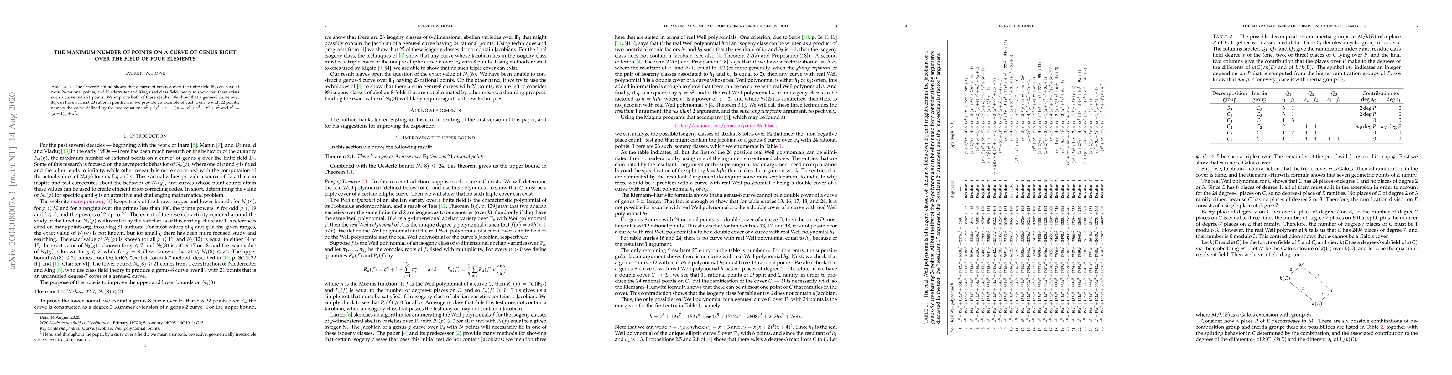 This paper improves the maximum number of rational points on a genus-8 curve over the finite field $\mathbb{F}_4$ to 23, and provides an example of such a curve with 22 points, defined by specific equations. Previous results had established a maximum of 24 points and an example with 21 points.