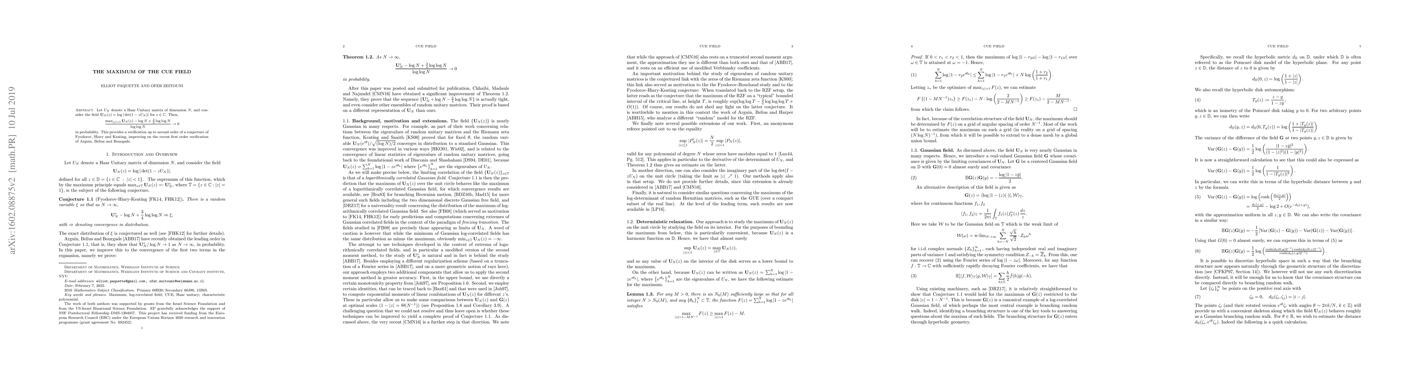 This research paper verifies a conjecture about the maximum of a field related to Haar Unitary matrices, improving on previous results with an additional order term, showing convergence in probability to zero.
