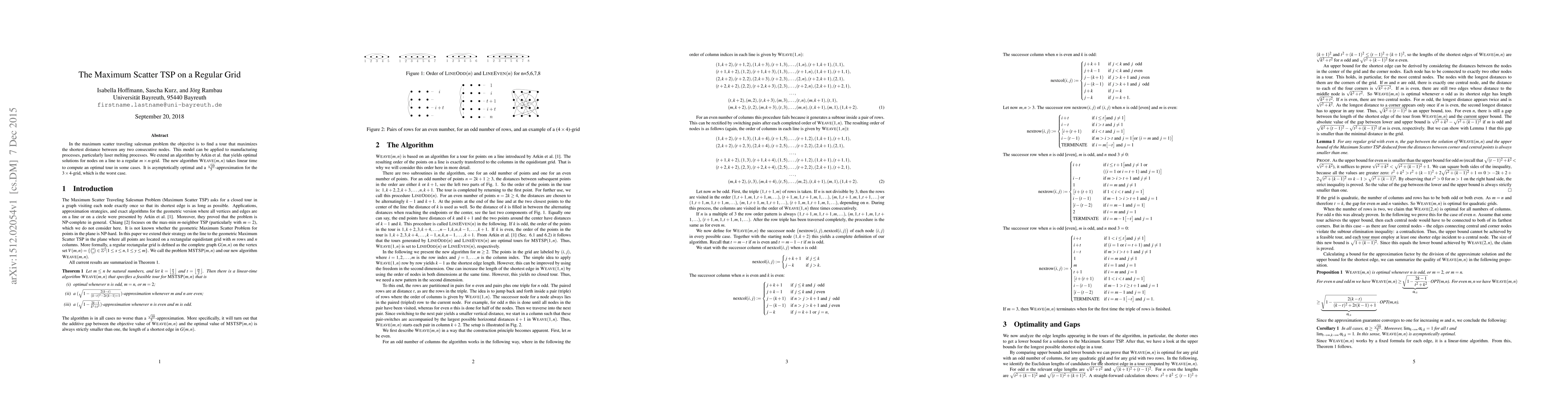 In the maximum scatter traveling salesman problem the objective is to find a tour that maximizes the shortest distance between any two consecutive nodes. This model can be applied to manufacturing processes, particularly laser melting processes. We extend an algorithm by Arkin et al. that yields optimal solutions for nodes on a line to a regular $m \times n$-grid. The new algorithm $\textsc{Weave}(m,n)$ takes linear time to compute an optimal tour in some cases. It is asymptotically optimal and a $\frac{\sqrt{10}}{5}$-approximation for the $3\times 4$-grid, which is the worst case.