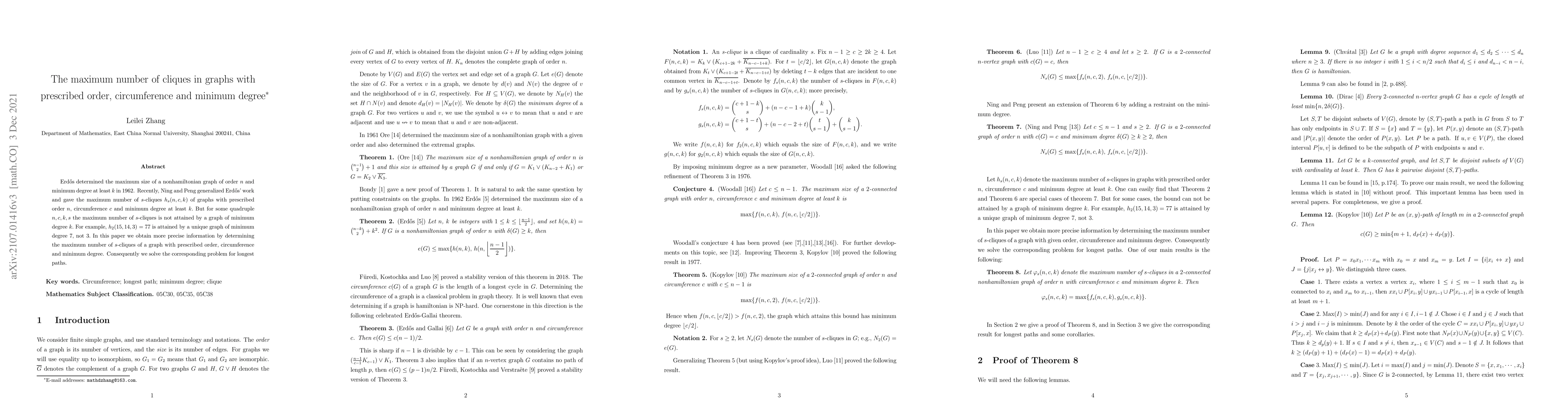 Erd\H{o}s determined the maximum size of a nonhamiltonian graph of order $n$ and minimum degree at least $k$ in 1962. Recently, Ning and Peng generalized. Erd\H{o}s' work and gave the maximum size $h(n,c,k)$ of graphs with prescribed order $n$, circumference $c$ and minimum degree at least $k.$ But for some triples $n,c,k,$ the maximum size is not attained by a graph of minimum degree $k.$ For example, $h(15,14,3)=77$ is attained by a unique graph of minimum degree $7,$ not $3.$ In this paper we obtain more precise information by determining the maximum size of a graph with prescribed order, circumference and minimum degree. Consequently we solve the corresponding problem for longest paths. All these results on the size of graphs have clique versions.
