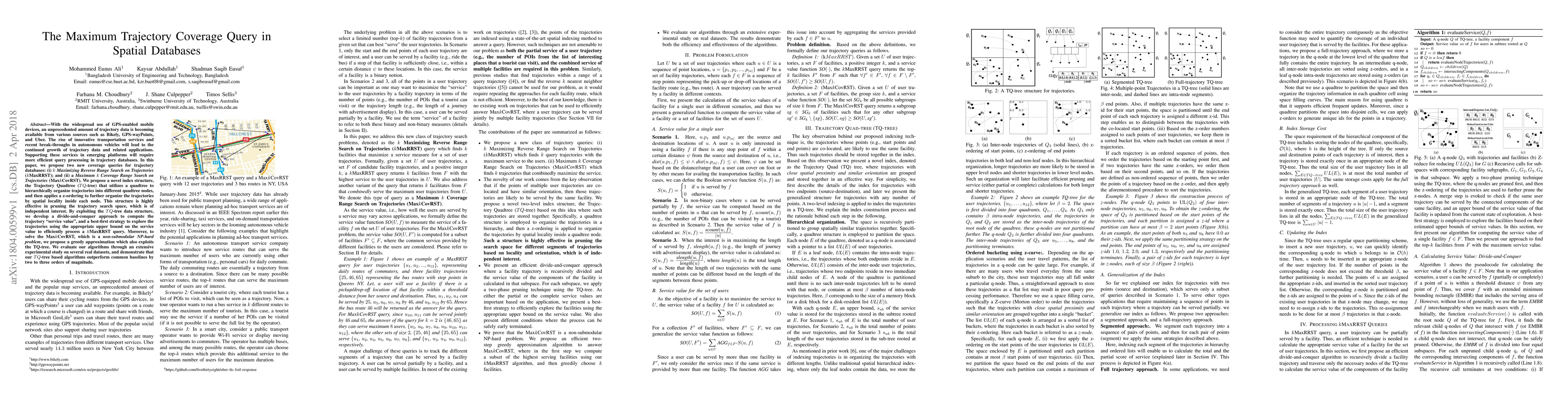 This paper introduces two new coverage queries for trajectory databases: k Maximizing Reverse Range Search on Trajectories (kMaxRRST) and Maximum k Coverage Range Search on Trajectories (MaxkCovRST). It proposes a novel Trajectory Quadtree (TQ-tree) index structure to efficiently organize and query trajectory data, achieving significant performance improvements over baselines.