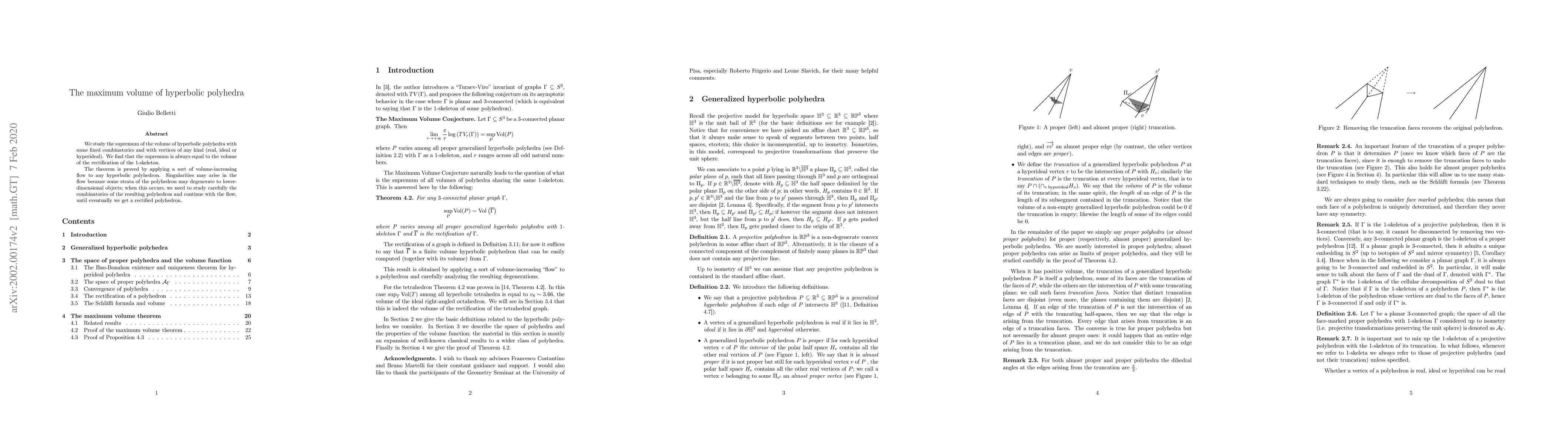 The maximum volume of hyperbolic polyhedra is equal to the volume of its rectification, found through a volume-increasing flow method that handles potential degenerations of strata.