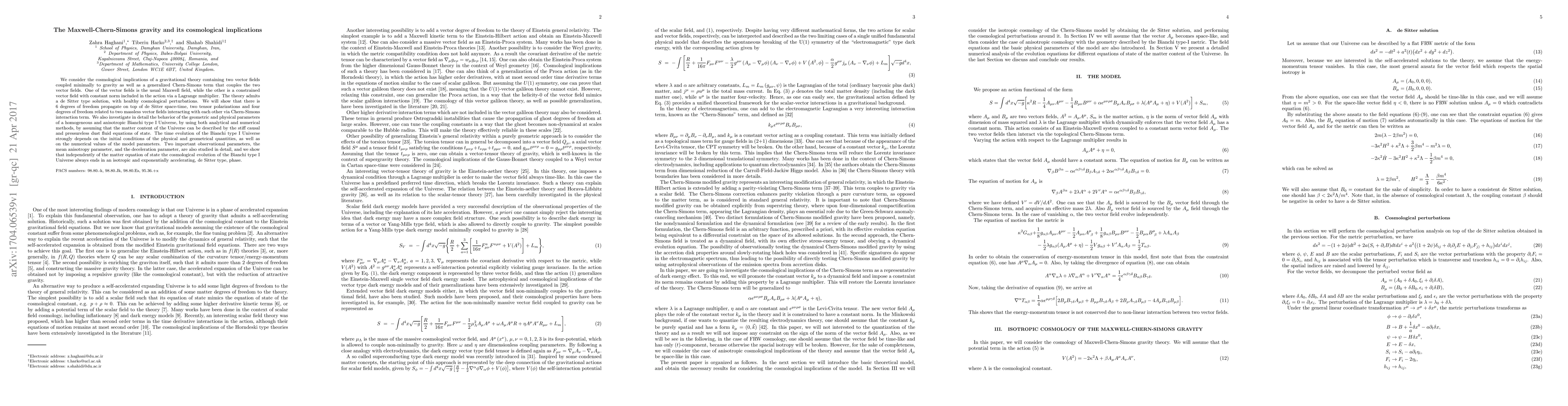 We consider the cosmological implications of a gravitational theory containing two vector fields coupled minimally to gravity as well as a generalized Chern-Simons term that couples the two vector fields. One of the vector fields is the usual Maxwell field, while the other is a constrained vector field with constant norm included in the action via a Lagrange multiplier. The theory admits a de Sitter type solution, with healthy cosmological perturbations. We will show that there is 6 degrees of freedom propagate on top of de Sitter space-time, two tensor polarizations and four degrees of freedom related to two massless vector fields interacting with each other via Chern-Simons interaction term. We also investigate in detail the behavior of the geometric and physical parameters of a homogeneous and anisotropic Bianchi type I Universe, by using both analytical and numerical methods, by assuming that the matter content of the Universe can be described by the stiff causal and pressureless dust fluid equations of state. The time evolution of the Bianchi type I Universe strongly depends on the initial conditions of the physical and geometrical quantities, as well as on the numerical values of the model parameters. Two important observational parameters, the mean anisotropy parameter, and the deceleration parameter, are also studied in detail, and we show that independently of the matter equation of state the cosmological evolution of the Bianchi type I Universe always ends in an isotropic and exponentially accelerating, de Sitter type, phase.