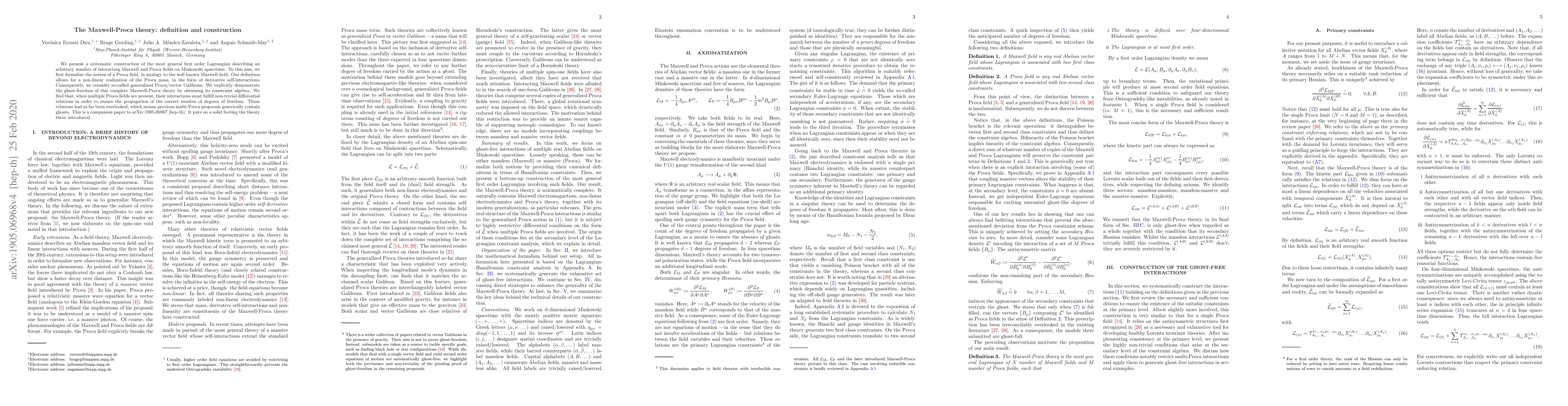 We present a systematic construction of the most general first order Lagrangian describing an arbitrary number of interacting Maxwell and Proca fields on Minkowski spacetime. To this aim, we first formalize the notion of a Proca field, in analogy to the well known Maxwell field. Our definition allows for a non-linear realization of the Proca mass, in the form of derivative self-interactions. Consequently, we consider so-called generalized Proca/vector Galileons. We explicitly demonstrate the ghost-freedom of this complete Maxwell-Proca theory by obtaining its constraint algebra. We find that, when multiple Proca fields are present, their interactions must fulfill non-trivial differential relations in order to ensure the propagation of the correct number of degrees of freedom. These relations had so far been overlooked, which means previous multi-Proca proposals generically contain ghosts. This is a companion paper to arXiv:1905.06968 [hep-th]. It puts on a solid footing the theory there introduced.