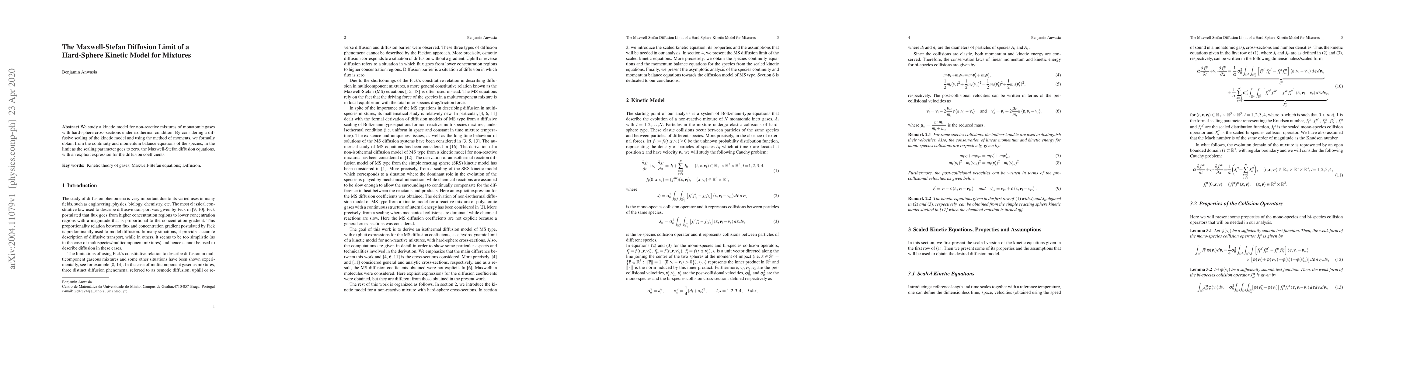The paper presents a detailed derivation of the Maxwell-Stefan diffusion equations from a hard-sphere kinetic model under isothermal conditions, providing explicit expressions for diffusion coefficients.