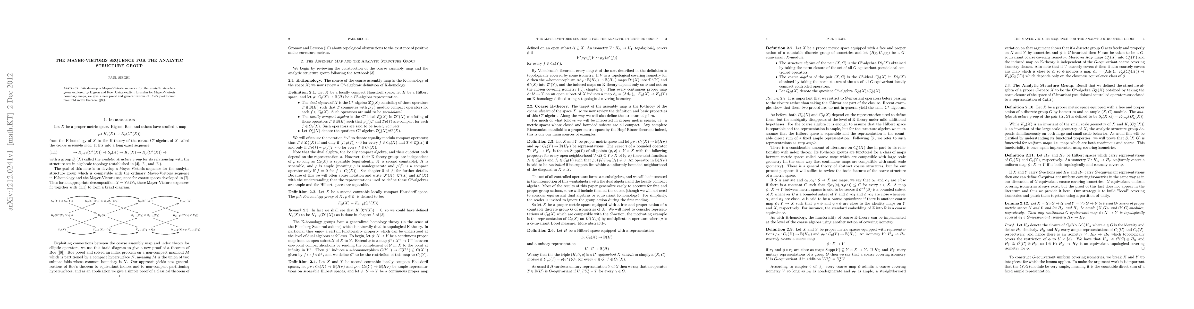 The paper develops a Mayer-Vietoris sequence for the analytic structure group, providing explicit boundary maps and new proofs and generalizations of Roe's partitioned manifold index theorem.