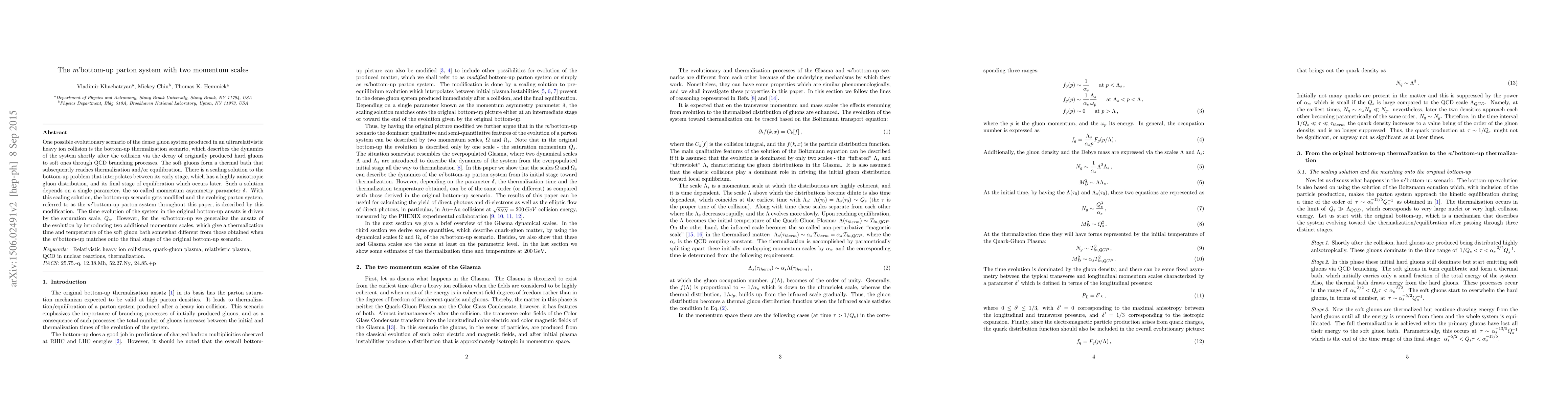 This paper explores a modified bottom-up thermalization scenario for the dense gluon system in ultrarelativistic heavy ion collisions, introducing an $m$'bottom-up parton system with two additional momentum scales that affect the thermalization time and temperature. The evolution is driven by the saturation scale, with a scaling solution dependent on a momentum asymmetry parameter $\delta$.