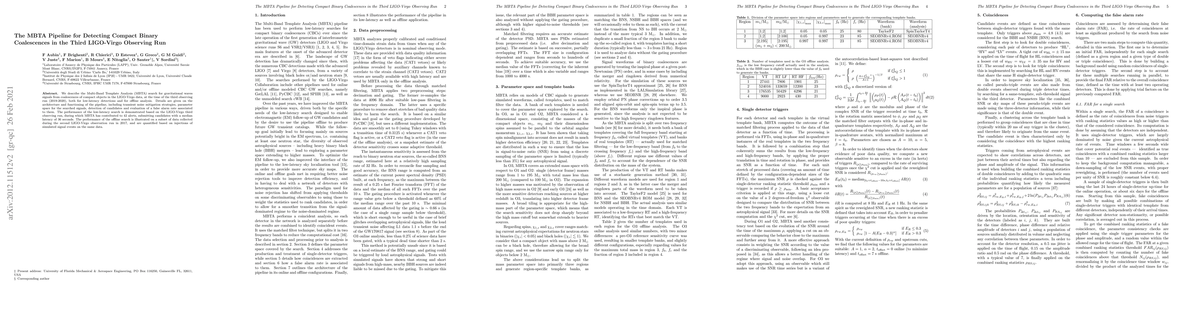 The MBTA pipeline detects gravitational waves from compact binary coalescences during the third LIGO-Virgo observing run, contributing to 42 alerts with a median latency of 36 seconds. Its performance is validated through offline analysis and simulations on data from the second observing run.