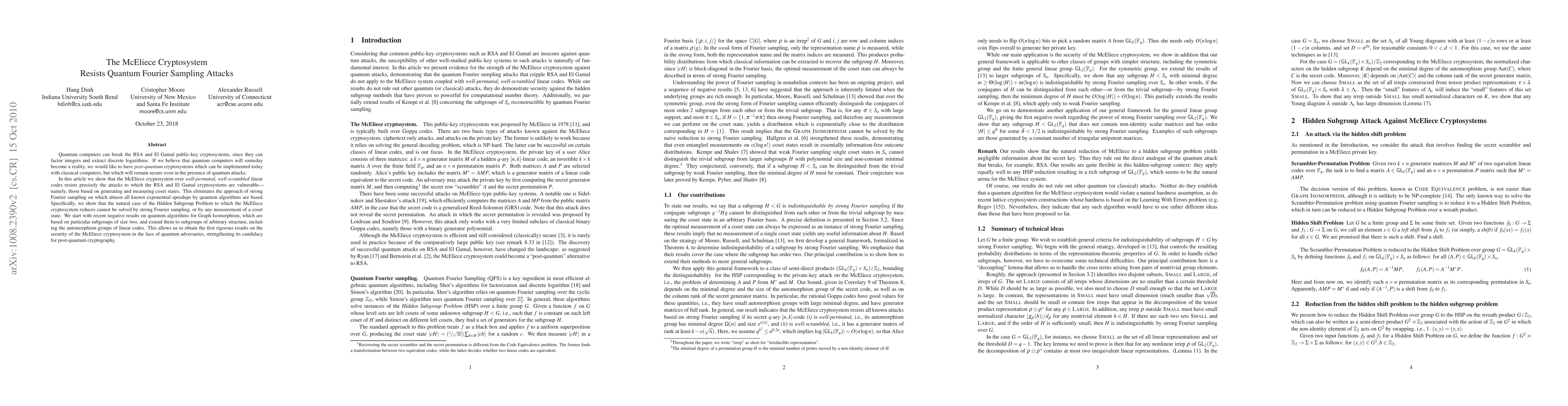 This paper demonstrates that the McEliece cryptosystem, based on well-permuted linear codes, remains secure against quantum Fourier sampling attacks, unlike RSA and El Gamal systems. It establishes that the McEliece cryptosystem cannot be solved by strong Fourier sampling, reinforcing its viability as a post-quantum cryptographic solution.