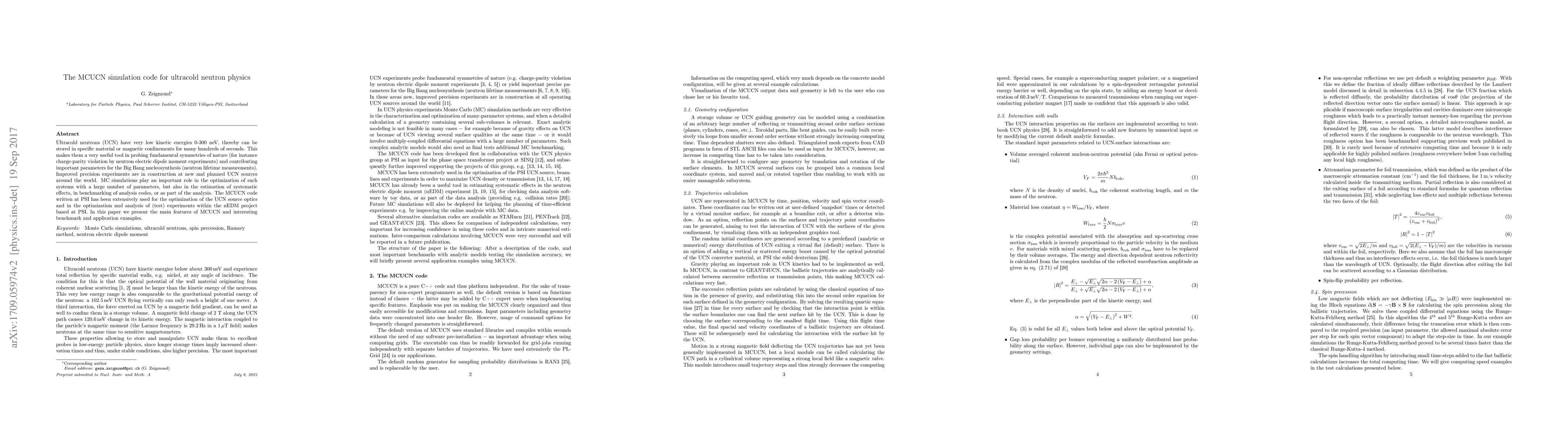 This paper introduces the MCUCN simulation code developed at PSI for modeling ultracold neutron (UCN) physics, emphasizing its use in optimizing UCN sources and analyzing experiments, particularly within the nEDM project. The code aids in precision experiments and systematic effect estimation for fundamental symmetry probing and Big Bang nucleosynthesis studies.