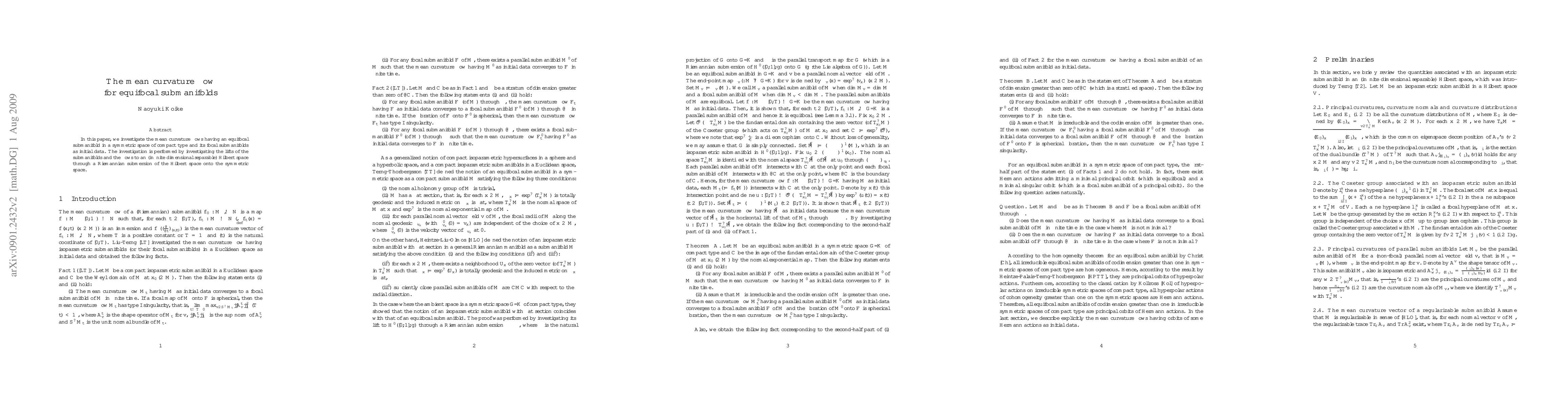 In this paper, we investigate the mean curvature flow having equifocal submanifolds as initial data. The investigation are performed by investigating the mean curvature flow having the lifted submanifolds to a Hilbert space through a Riemannian submersion as initial data.