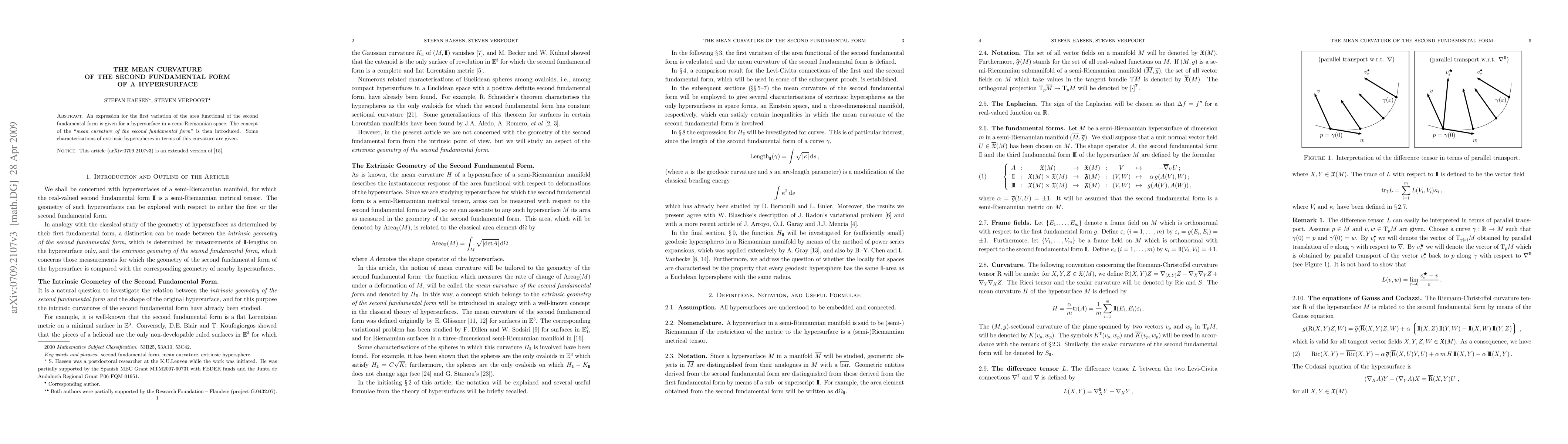 Researchers introduced a concept called mean curvature of the second fundamental form for hypersurfaces in semi-Riemannian spaces, providing characterisations of extrinsic hyperspheres.