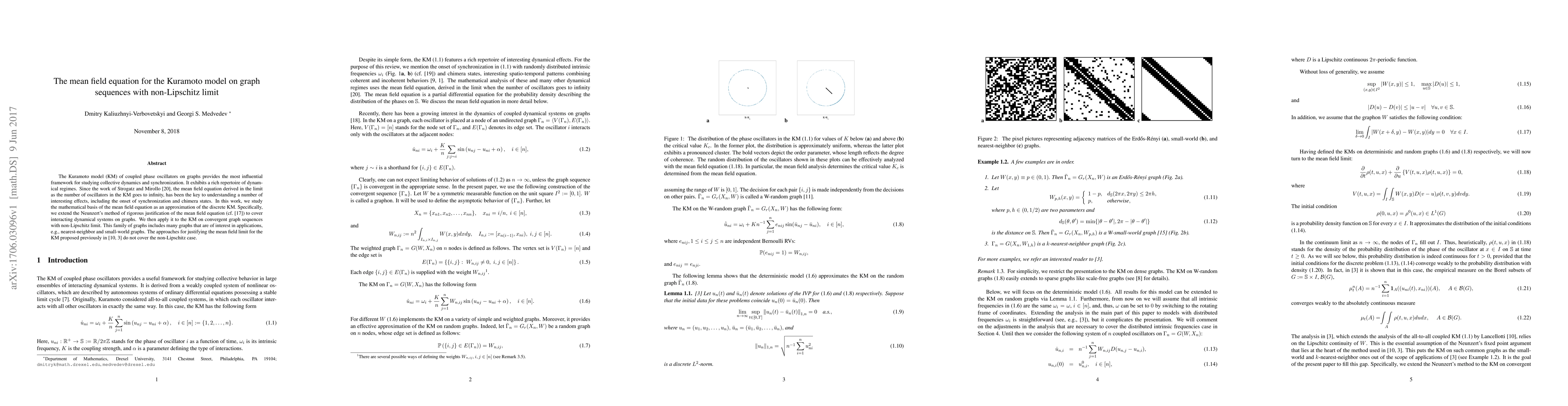 Researchers developed a new method to study the Kuramoto model on graph sequences with non-Lipschitz limits, extending previous work on mean field equations for collective dynamics and synchronization.