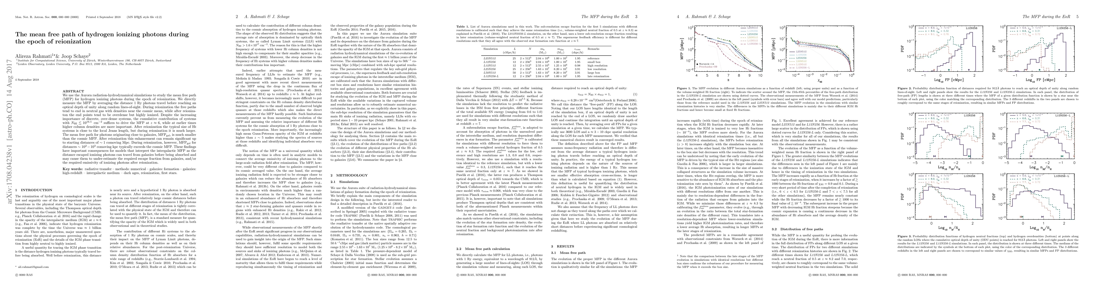 We use the Aurora radiation-hydrodynamical simulations to study the mean free path (MFP) for hydrogen ionizing photons during the epoch of reionization. We directly measure the MFP by averaging the distance 1 Ry photons travel before reaching an optical depth of unity along random lines-of-sight. During reionization the free paths tend to end in neutral gas with densities near the cosmic mean, while after reionizaton the end points tend to be overdense but highly ionized. Despite the increasing importance of discrete, over-dense systems, the cumulative contribution of systems with $N_{\rm{HI}} \lesssim 10^{16.5}~{\rm cm^{-2}}$ suffices to drive the MFP at $z \approx 6$, while at earlier times higher column densities are more important. After reionization the typical size of HI systems is close to the local Jeans length, but during reionization it is much larger. The mean free path for photons originating close to galaxies, $\rm{MFP_{gal}}$, is much smaller than the cosmic MFP. After reionization this enhancement can remain significant up to starting distances of $\sim 1$ comoving Mpc. During reionization, however, $\rm{MFP_{gal}}$ for distances $\sim 10^2 - 10^3$ comoving kpc typically exceeds the cosmic MFP. These findings have important consequences for models that interpret the intergalactic MFP as the distance escaped ionizing photons can travel from galaxies before being absorbed and may cause them to under-estimate the required escape fraction from galaxies, and/or the required emissivity of ionizing photons after reionization.