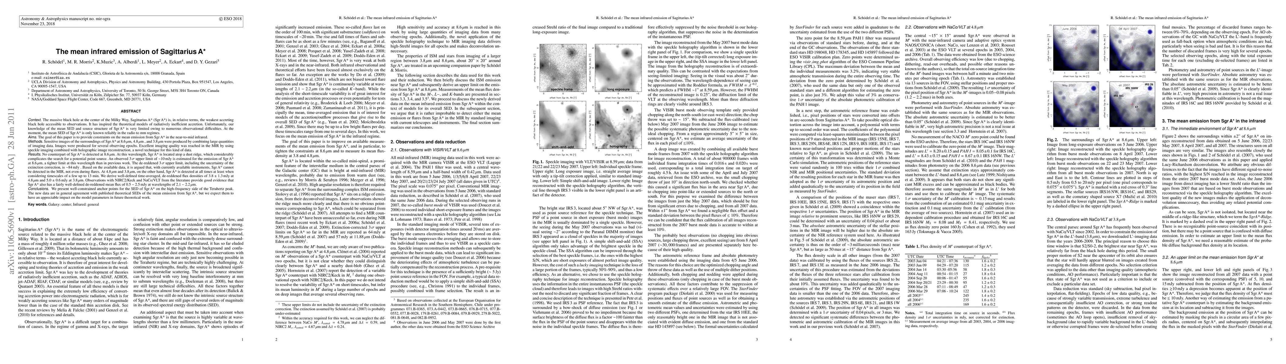 (abridged) The massive black hole at the center of the Milky Way, SagittariusA* is, in relative terms, the weakest accreting black hole accessible to observations. At the moment, the mean SED of SgrA* is only known reliably in the radio to mm regimes. The goal of this paper is to provide constraints on the mean emission from SgrA* in the near-to-mid infrared. Excellent imaging quality was reached in the MIR by using speckle imaging combined with holographic image reconstruction, a novel technique for this kind of data. No counterpart of SgrA* is detected at 8.6 microns. At this wavelength, SgrA* is located atop a dust ridge, which considerably complicates the search for a potential point source. An observed 3 sigma upper limit of ~10 mJy is estimated for the emission of SgrA* at 8.6 microns, a tighter limit at this wavelength than in previous work. The de-reddened 3 sigma upper limit, including the uncertainty of the extinction correction, is ~84 mJy . Based on the available data, it is argued that, with currently available instruments, SgrA* cannot be detected in the MIR, not even during flares. At 4.8 and 3.8 microns, on the other hand, SgrA* is detected at all times, at least when considering timescales of a few up to 13 min. We derive well-defined time-averaged, de-reddened flux densities of 3.8+-1.3 mJy at 4.8 microns and 5.0+-0.6 mJy at 3.8 microns. Observations with NIRC2/Keck and NaCo/VLT from the literature provide good evidence that SgrA* also has a fairly well-defined de-reddened mean flux of 0.5-2.5 mJy at wavelengths of 2.1-2.2 microns. We present well-constrained anchor points for the SED of SgrA* on the high-frequency side of the Terahertz peak. The new data are in general agreement with published theoretical SEDs of the mean emission from SgrA*, but we expect them to have an appreciable impact on the model parameters in future theoretical work.