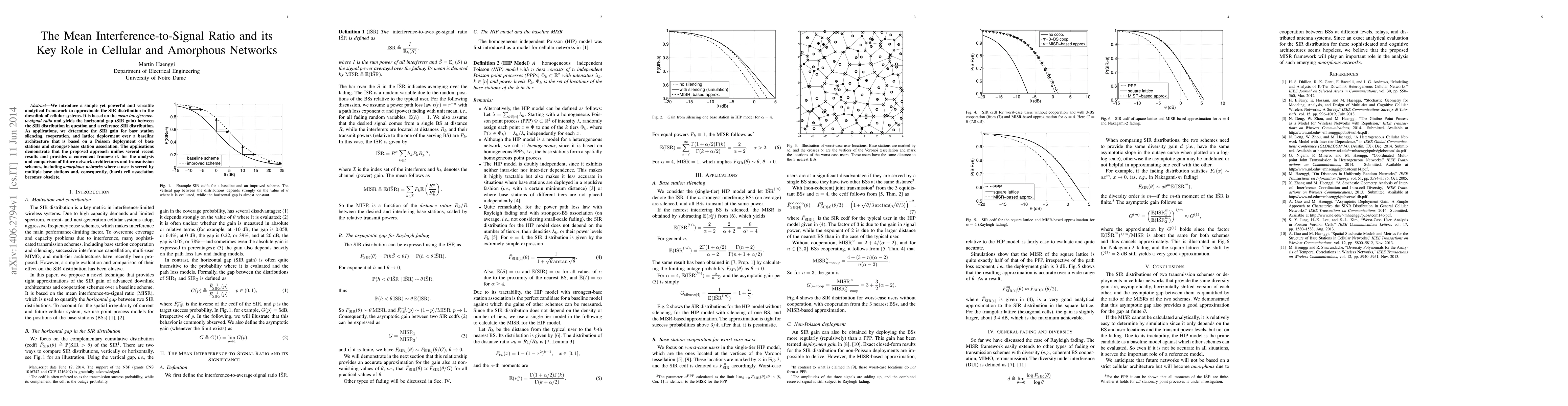 We introduce a simple yet powerful and versatile analytical framework to approximate the SIR distribution in the downlink of cellular systems. It is based on the mean interference-to-signal ratio and yields the horizontal gap (SIR gain) between the SIR distribution in question and a reference SIR distribution. As applications, we determine the SIR gain for base station silencing, cooperation, and lattice deployment over a baseline architecture that is based on a Poisson deployment of base stations and strongest-base station association. The applications demonstrate that the proposed approach unifies several recent results and provides a convenient framework for the analysis and comparison of future network architectures and transmission schemes, including amorphous networks where a user is served by multiple base stations and, consequently, (hard) cell association becomes obsolete.