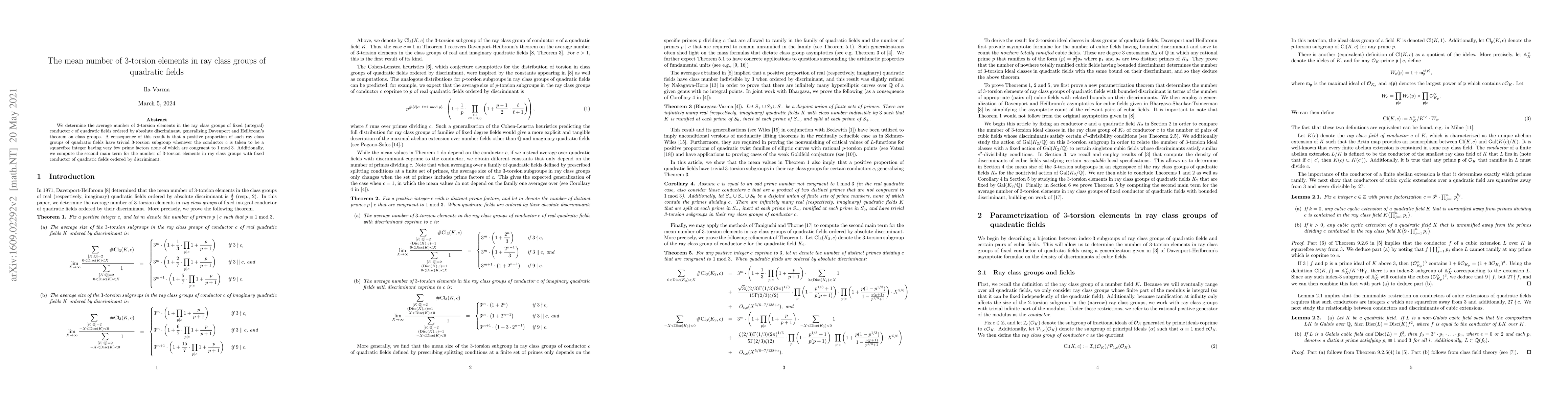 This paper determines the average number of $3$-torsion elements in ray class groups of quadratic fields with a fixed conductor, generalizing a theorem by Davenport and Heilbronn. It finds that a positive proportion of such ray class groups have trivial $3$-torsion when the conductor is a squarefree integer with few prime factors congruent to $2 \bmod 3$.