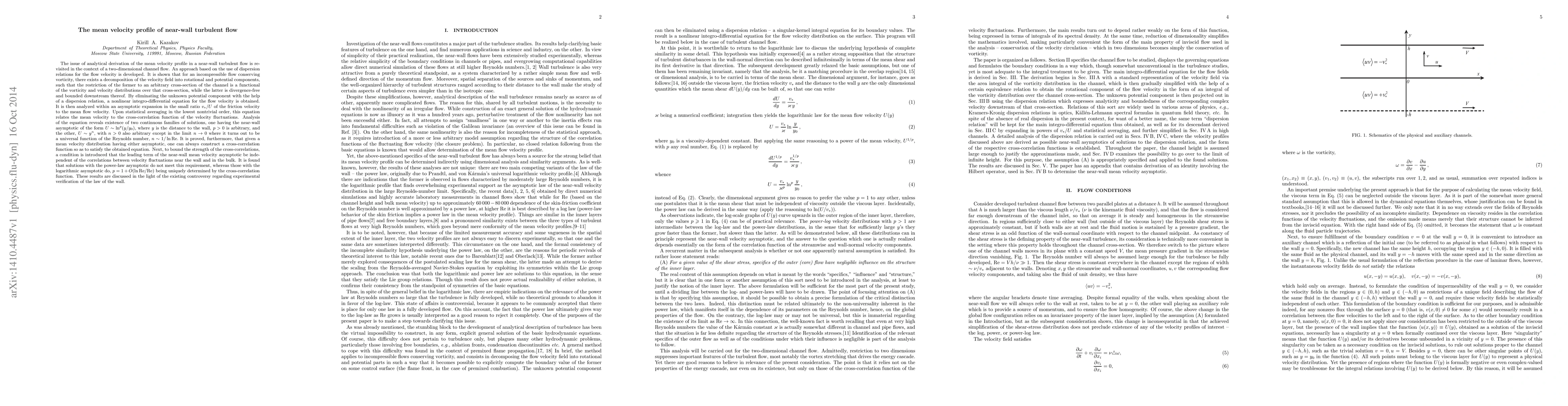 This paper develops an analytical approach to derive the mean velocity profile in near-wall turbulent flow in a two-dimensional channel, revealing two continuous families of solutions. It shows that the mean velocity can be expressed in terms of the cross-correlation function of velocity fluctuations, and discusses the implications for the law of the wall.
