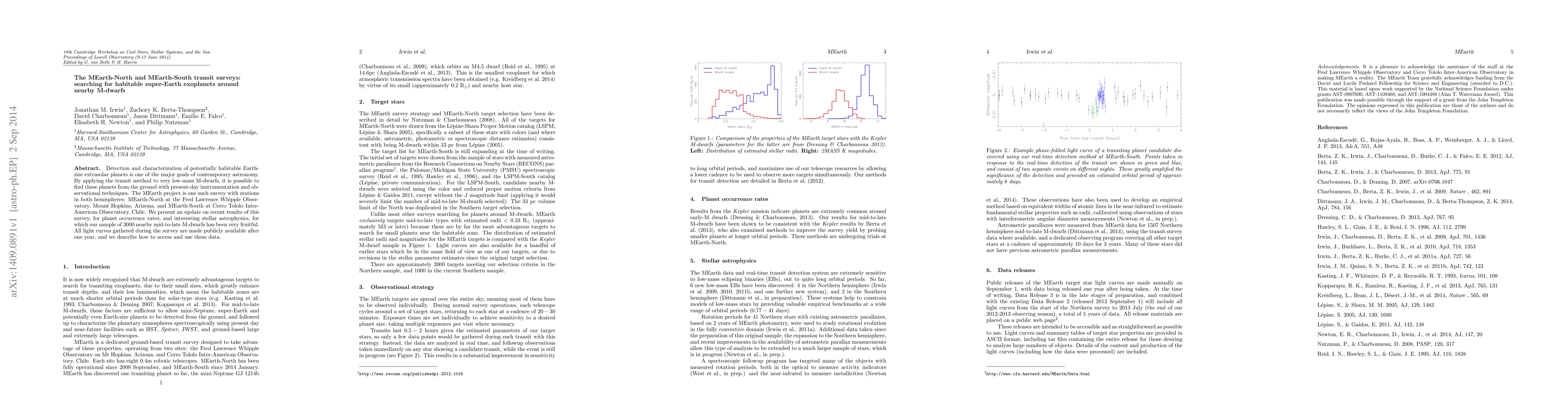 The MEarth-North and MEarth-South surveys aim to detect habitable Earth-sized exoplanets around nearby M-dwarfs using the transit method. Recent results from the project's 3000 M-dwarfs sample provide valuable insights into planet occurrence rates and stellar astrophysics.