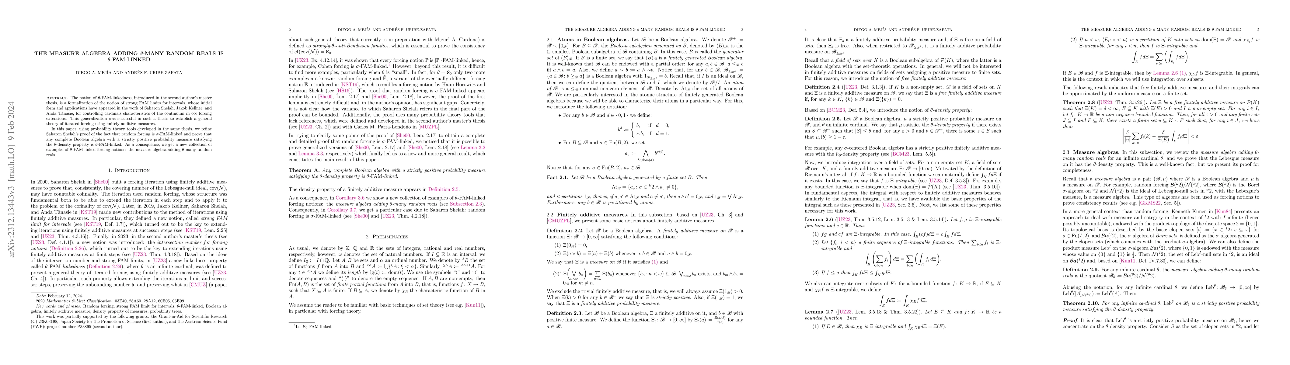 This paper explores the concept of $\theta$-FAM-linkedness, proving that measure algebra adding $\theta$-many random reals is $\theta$-FAM-linked. It refines Shelah's proof of random forcing's $\sigma$-FAM-linkedness and provides new examples of $\theta$-FAM-linked forcing notions.