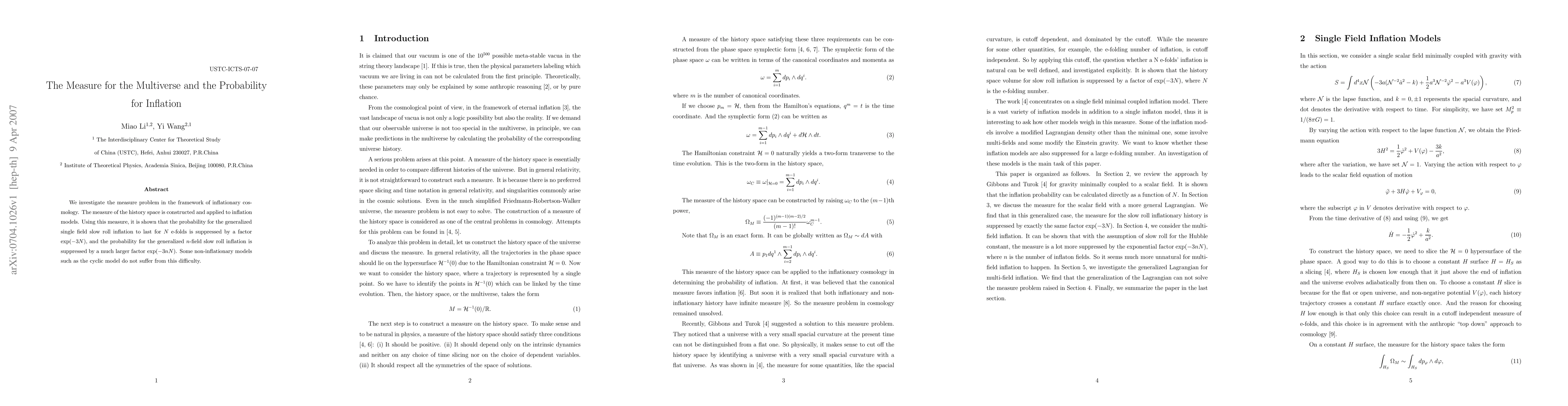 This paper addresses the measure problem in inflationary cosmology, constructing a measure for the history space and applying it to various inflation models. It finds that the probability for single and multi-field slow roll inflations to last for $N$ e-folds is significantly suppressed, while non-inflationary cyclic models are unaffected.
