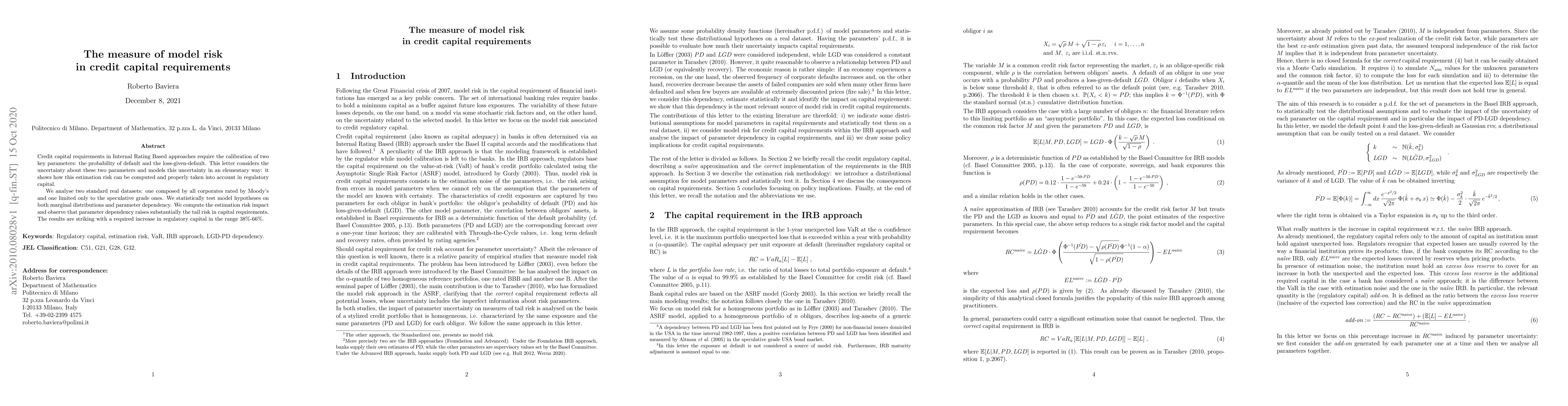 This work stands out by explicitly quantifying model risk in credit capital requirements, demonstrating that parameter dependency significantly impacts capital adequacy, and proposing an add-on measure to account for this risk.