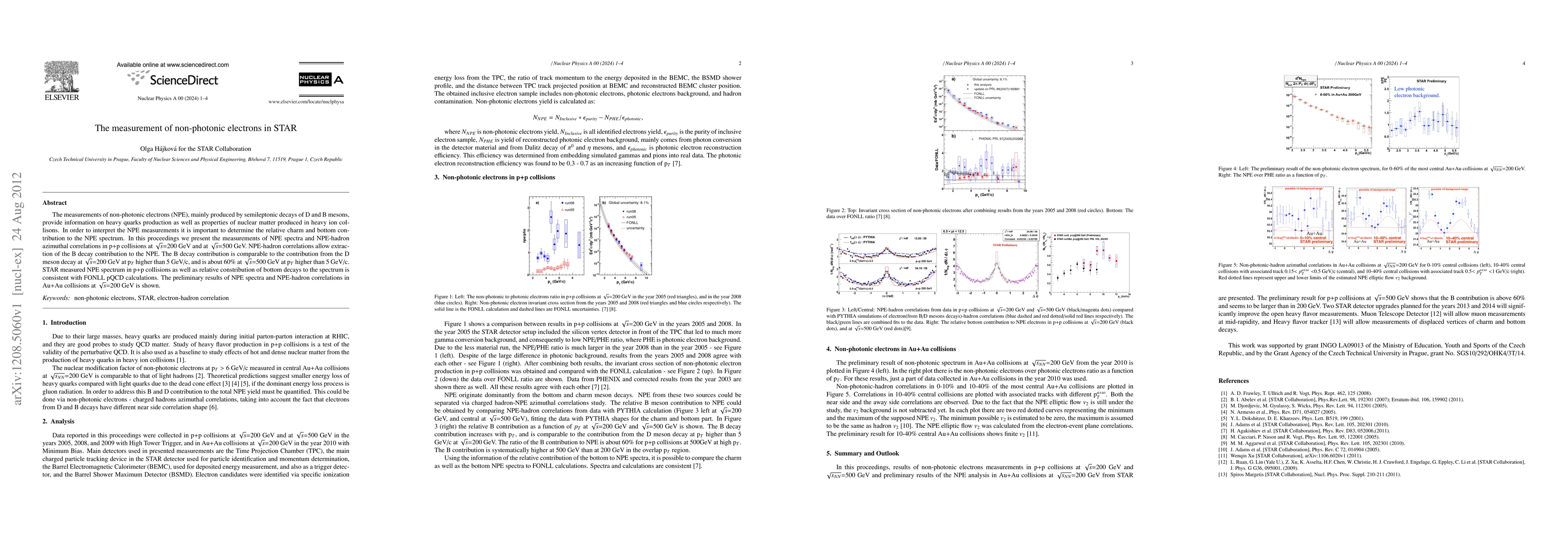 The measurements of non-photonic electrons (NPE), mainly produced by semileptonic decays of D and B mesons, provide information on heavy quarks production as well as properties of nuclear matter produced in heavy ion collisons. In order to interpret the NPE measurements it is important to determine the relative charm and bottom contribution to the NPE spectrum. In this proceedings we present the measurements of NPE spectra and NPE-hadron azimuthal correlations in p+p collisions at $\sqrt{s}$=200 GeV and at $\sqrt{s}$=500 GeV. NPE-hadron correlations allow extraction of the B decay contribution to the NPE. The B decay contribution is comparable to the contribution from the D meson decay at $\sqrt{s}$=200 GeV at p$_T$ higher than 5 GeV/c, and is about 60% at $\sqrt{s}$=500 GeV at p$_T$ higher than 5 GeV/c. STAR measured NPE spectrum in p+p collisions as well as relative constribution of bottom decays to the spectrum is consistent with FONLL pQCD calculations. The preliminary results of NPE spectra and NPE-hadron correlations in Au+Au collisions at $\sqrt{s}$=200 GeV is shown.