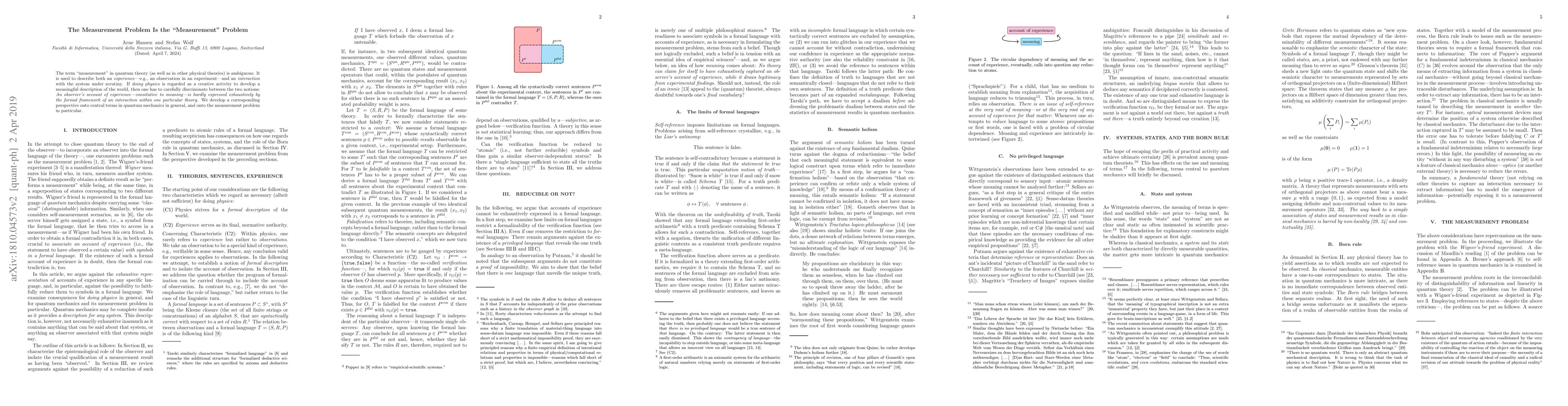 The term "measurement" in quantum theory (as well as in other physical theories) is ambiguous: It is used to describe both an experience - e.g., an observation in an experiment - and an interaction with the system under scrutiny. If doing physics is regarded as a creative activity to develop a meaningful description of the world, then one has to carefully discriminate between the two notions: An observer's account of experience - consitutive to meaning - is hardly expressed exhaustively by the formal framework of an interaction within one particular theory. We develop a corresponding perspective onto central terms in quantum mechanics in general, and onto the measurement problem in particular.