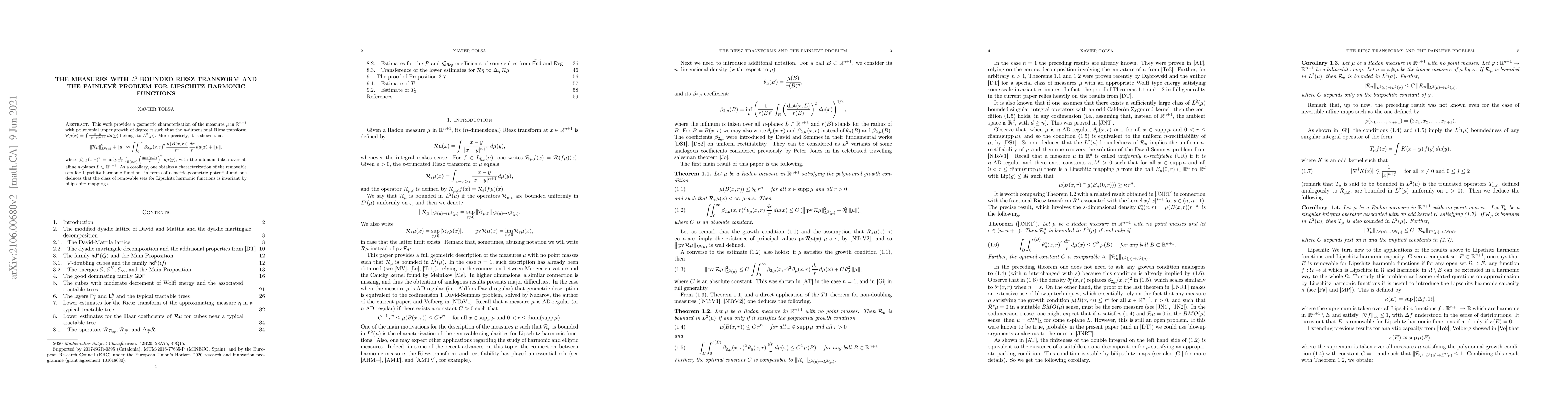 This research paper presents a geometric characterization of measures in $mathbb R^{n+1}$ with polynomial growth, for which the Riesz transform belongs to $L^2$. It also provides a characterization of removable sets for Lipschitz harmonic functions, showing their invariance under bilipschitz mappings.