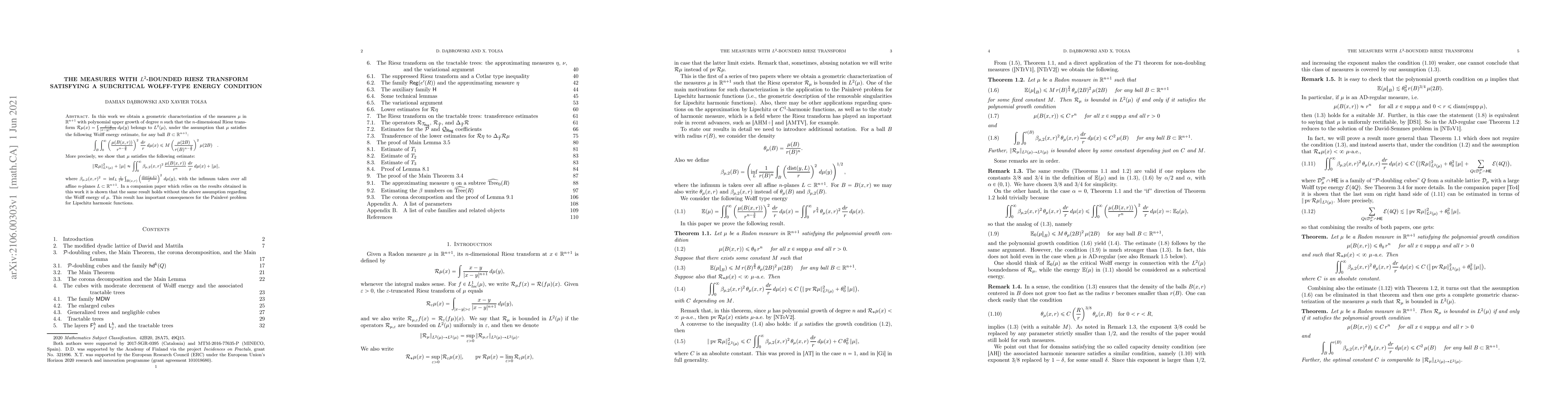 In this work we obtain a geometric characterization of the measures $\mu$ in $\mathbb{R}^{n+1}$ with polynomial upper growth of degree $n$ such that the $n$-dimensional Riesz transform $\mathcal{R}\mu (x) = \int \frac{x-y}{|x-y|^{n+1}}\,d\mu(y)$ belongs to $L^2(\mu)$, under the assumption that $\mu$ satisfies the following Wolff energy estimate, for any ball $B\subset\mathbb{R}^{n+1}$: $$\int_B \int_0^\infty \left(\frac{\mu(B(x,r))}{r^{n-\frac38}}\right)^2\,\frac{dr}r\,d\mu(x)\leq M\,\bigg(\frac{\mu(2B)}{r(B)^{n-\frac38}}\bigg)^2\,\mu(2B).$$ More precisely, we show that $\mu$ satisfies the following estimate: $$\|\mathcal{R}\mu\|_{L^2(\mu)}^2 + \|\mu\|\approx \int\!\!\int_0^\infty \beta_{\mu,2}(x,r)^2\,\frac{\mu(B(x,r))}{r^n}\,\frac{dr}r\,d\mu(x) + \|\mu\|,$$ where $\beta_{\mu,2}(x,r)^2 = \inf_L \frac1{r^n}\int_{B(x,r)} \left(\frac{\mathrm{dist}(y,L)}r\right)^2\,d\mu(y),$ with the infimum taken over all affine $n$-planes $L\subset\mathbb{R}^{n+1}$. In a companion paper which relies on the results obtained in this work it is shown that the same result holds without the above assumption regarding the Wolff energy of $\mu$. This result has important consequences for the Painlev\'e problem for Lipschitz harmonic functions.