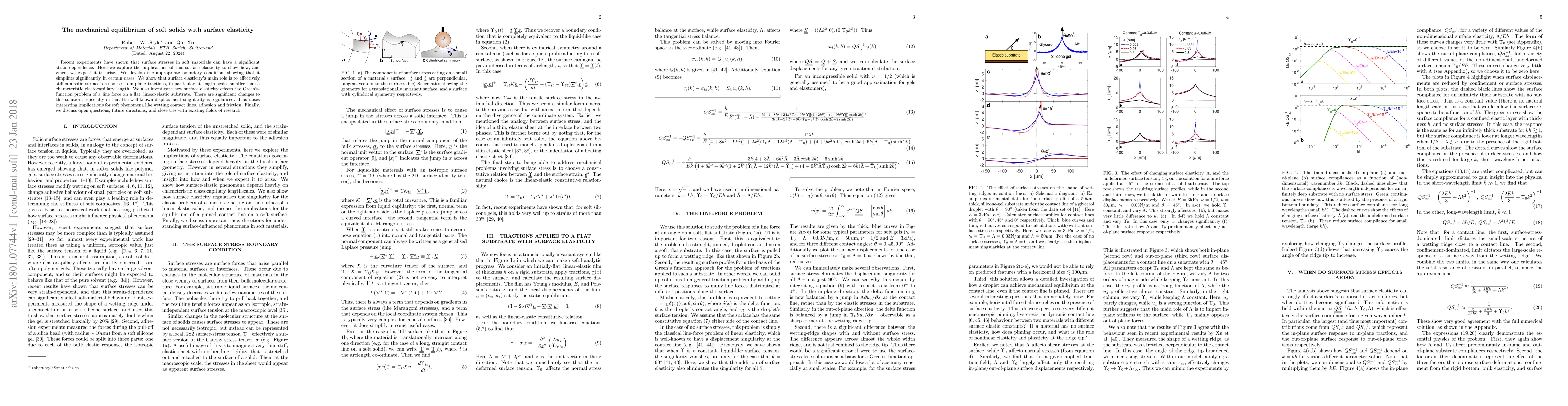 This paper explores how surface stresses in soft materials, exhibiting strain-dependent surface elasticity, affect mechanical equilibrium and solid surfaces' response to in-plane tractions. It develops relevant boundary conditions, shows significant stiffening at small length scales, and regularizes the displacement singularity in the Green's-function problem for line forces on elastic substrates, impacting phenomena like wetting, adhesion, and friction.