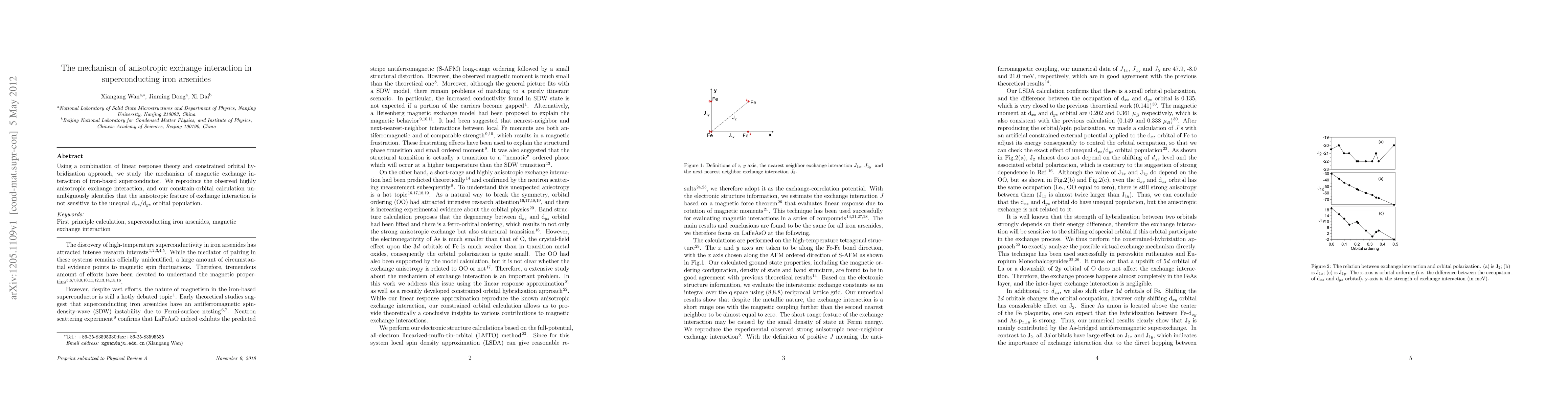 Summary: This study employs linear response theory and constrained orbital hybridization to elucidate the anisotropic exchange interaction in superconducting iron arsenides, revealing that the observed anisotropy is robust against variations in d$_{xz}$/d$_{yz}$ orbital populations.