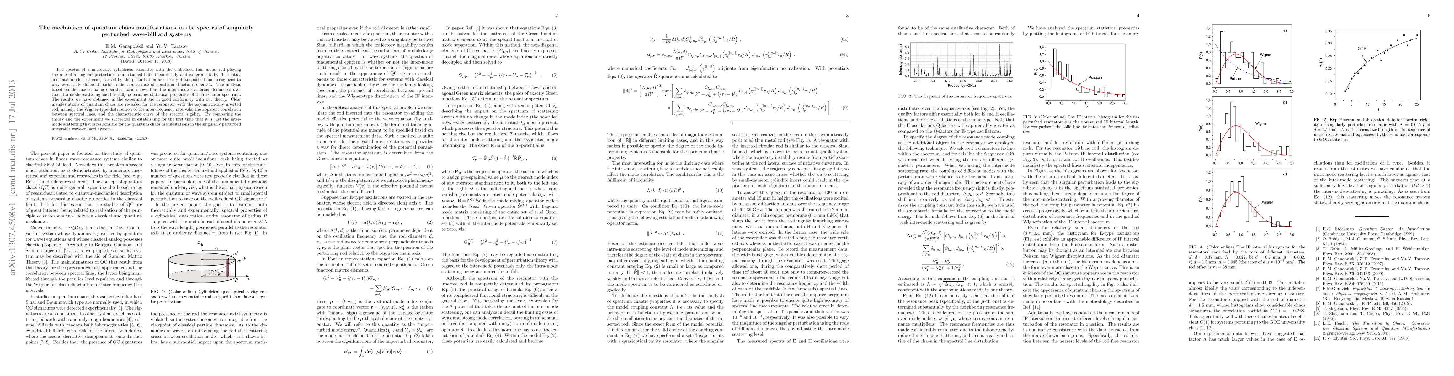 Researchers studied a microwave resonator with a metal rod as a singular perturbation, finding that inter-mode scattering causes quantum chaos manifestations in the spectrum, which were confirmed by experiment.