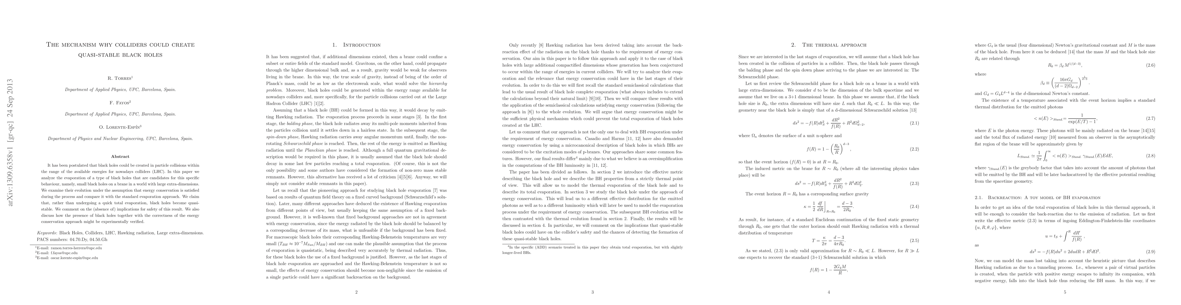 Researchers investigated how small black holes in extra dimensions could become quasi-stable after colliding in particle accelerators, offering a potential alternative to their rapid evaporation.