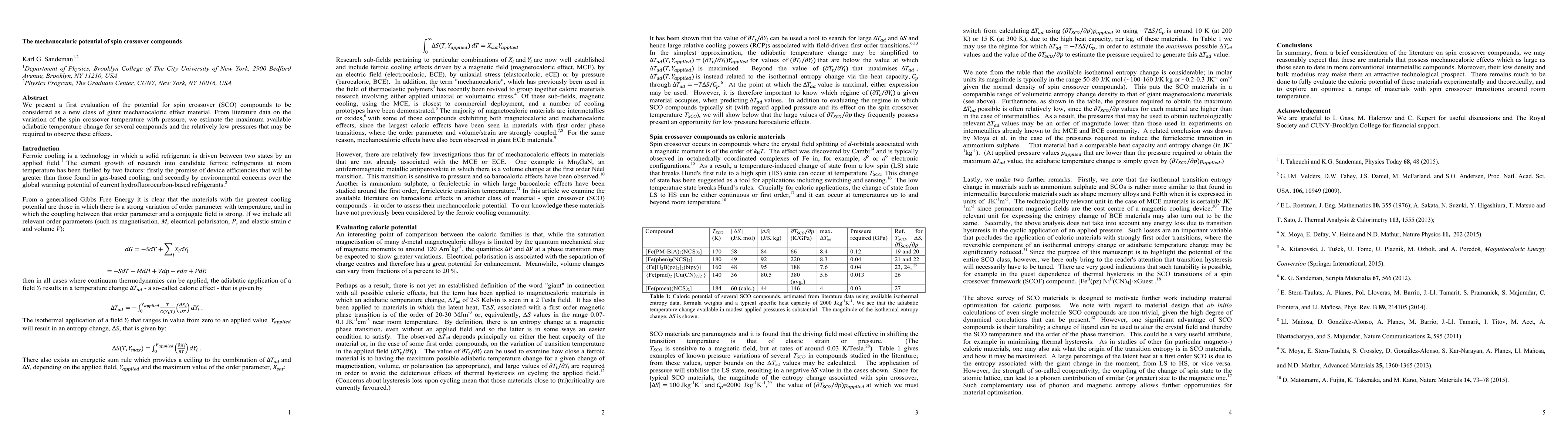 We present a first evaluation of the potential for spin crossover (SCO) compounds to be considered as a new class of giant mechanocaloric effect material. From literature data on the variation of the spin crossover temperature with pressure, we estimate the maximum available adiabatic temperature change for several compounds and the relatively low pressures that may be required to observe these effects.