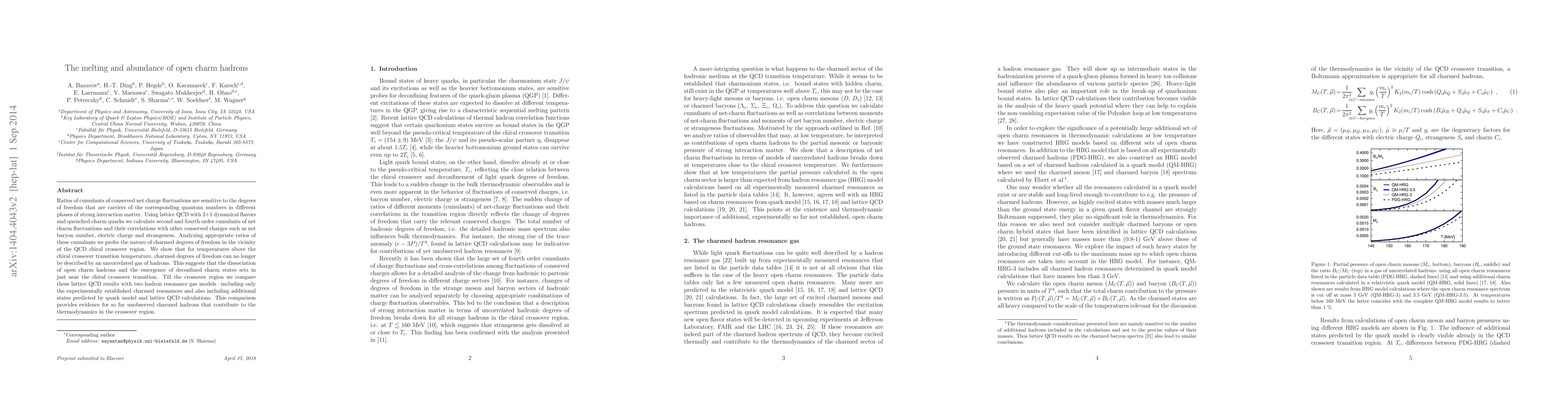 Ratios of cumulants of conserved net charge fluctuations are sensitive to the degrees of freedom that are carriers of the corresponding quantum numbers in different phases of strong interaction matter. Using lattice QCD with 2+1 dynamical flavors and quenched charm quarks we calculate second and fourth order cumulants of net charm fluctuations and their correlations with other conserved charges such as net baryon number, electric charge and strangeness. Analyzing appropriate ratios of these cumulants we probe the nature of charmed degrees of freedom in the vicinity of the QCD chiral crossover region. We show that for temperatures above the chiral crossover transition temperature, charmed degrees of freedom can no longer be described by an uncorrelated gas of hadrons. This suggests that the dissociation of open charm hadrons and the emergence of deconfined charm states sets in just near the chiral crossover transition. Till the crossover region we compare these lattice QCD results with two hadron resonance gas models --including only the experimentally established charmed resonances and also including additional states predicted by quark model and lattice QCD calculations. This comparison provides evidence for so far unobserved charmed hadrons that contribute to the thermodynamics in the crossover region.