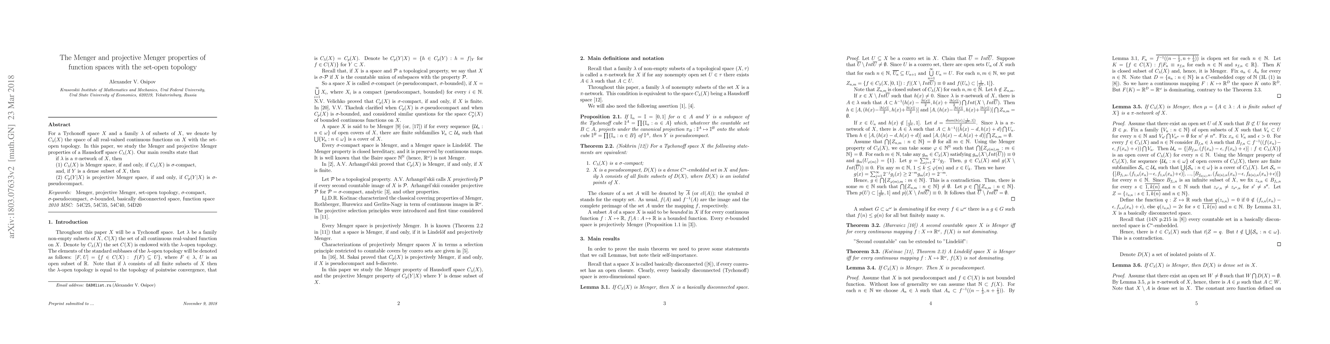 For a Tychonoff space $X$ and a family $\lambda$ of subsets of $X$, we denote by $C_{\lambda}(X)$ the space of all real-valued continuous functions on $X$ with the set-open topology. In this paper, we study the Menger and projective Menger properties of a Hausdorff space $C_{\lambda}(X)$. Our main results state that if $\lambda$ is a $\pi$-network of $X$ then (1) $C_{\lambda}(X)$ is Menger space if and only if it is $\sigma$-compact, if $Y$ is a dense subset of $X$ then (2) $C_{p}(Y\vert X)$ is projective Menger space if and only if it is $\sigma$-pseudocompact.