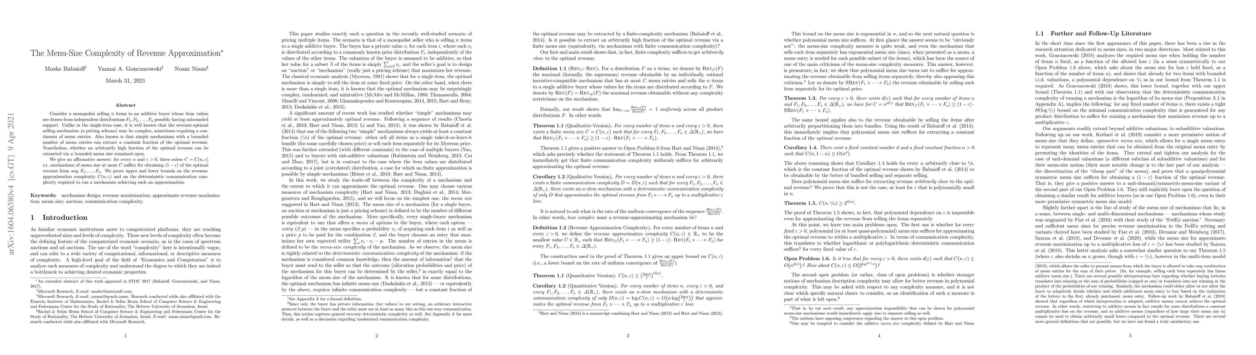 Consider a monopolist selling $n$ items to an additive buyer whose item values are drawn from independent distributions $F_1,F_2,\ldots,F_n$ possibly having unbounded support. Unlike in the single-item case, it is well known that the revenue-optimal selling mechanism (a pricing scheme) may be complex, sometimes requiring a continuum of menu entries. Also known is that simple mechanisms with a bounded number of menu entries can extract a constant fraction of the optimal revenue. Nonetheless, whether an arbitrarily high fraction of the optimal revenue can be extracted via a bounded menu size remained open. We give an affirmative answer: for every $n$ and $\varepsilon>0$, there exists $C=C(n,\varepsilon)$ s.t. mechanisms of menu size at most $C$ suffice for obtaining $(1-\varepsilon)$ of the optimal revenue from any $F_1,\ldots,F_n$. We prove upper and lower bounds on the revenue-approximation complexity $C(n,\varepsilon)$ and on the deterministic communication complexity required to run a mechanism achieving such an approximation.