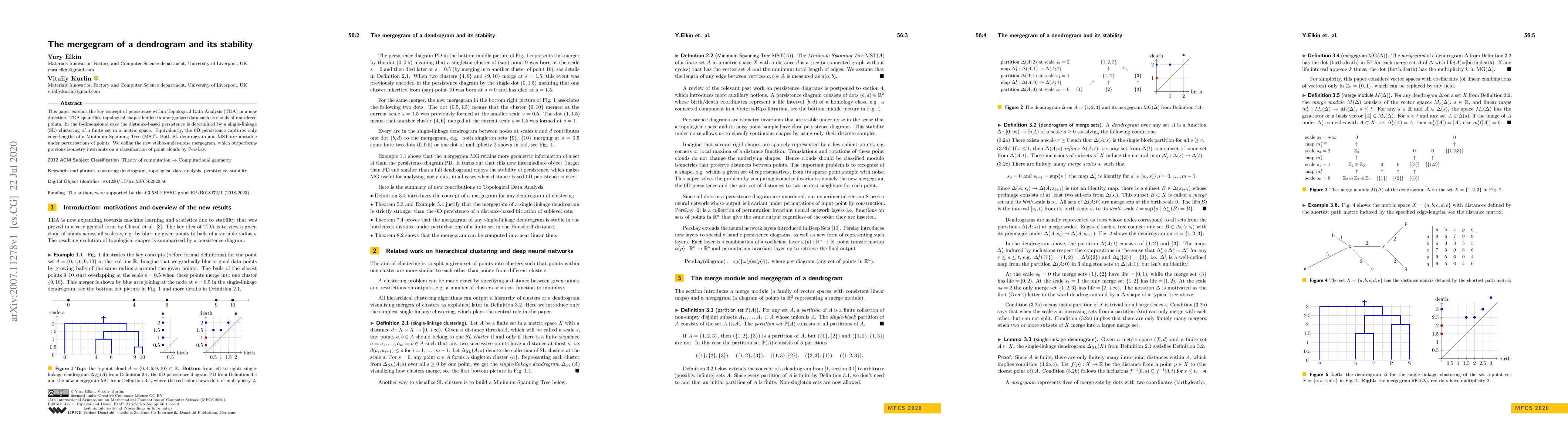 Researchers created a new method called the mergegram that combines dendrograms and Minimum Spanning Trees to create a more stable shape descriptor for analyzing point clouds. This approach outperforms previous methods in classifying point clouds with noise.