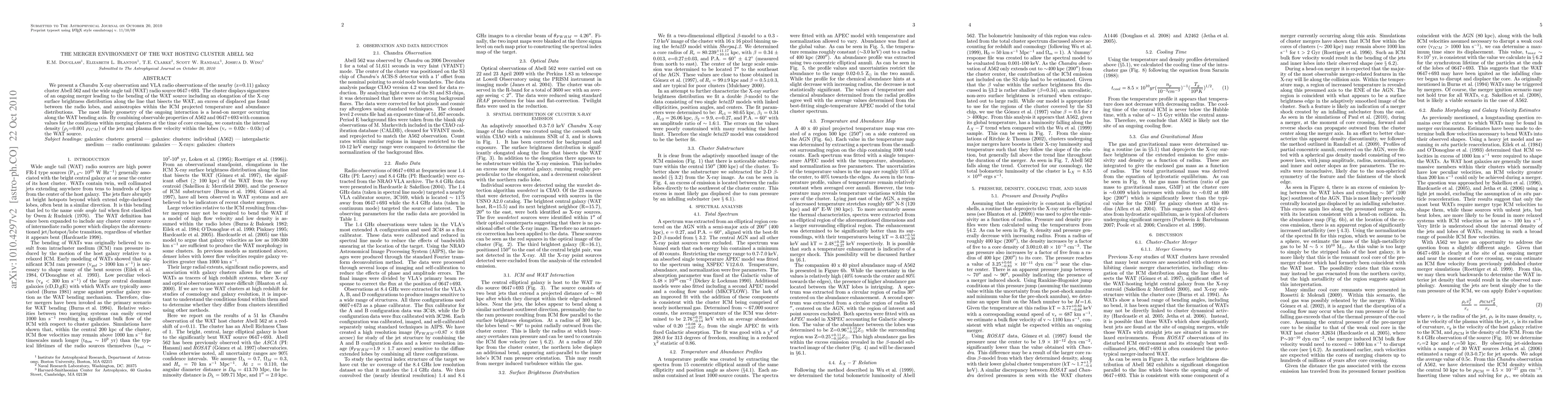 We present a Chandra X-ray observation and VLA radio observations of the nearby (z=0.11) galaxy cluster Abell 562 and the wide angle tail (WAT) radio source 0647+693. The cluster displays signatures of an ongoing merger leading to the bending of the WAT source including an elongation of the X-ray surface brightness distribution along the line that bisects the WAT, an excess of displaced gas found between the radio lobes, and anisotropies within the ICM projected temperature and abundance distributions. The most likely geometry of the ongoing interaction is a head-on merger occurring along the WAT bending axis. By combining observable properties of A562 and 0647+693 with common values for the conditions within merging clusters at the time of core crossing, we constrain the internal density (rho[ j ] = 0.001 rho[ICM]) of the jets and plasma flow velocity within the lobes (v = 0.02c - 0.03c) of the WAT source.