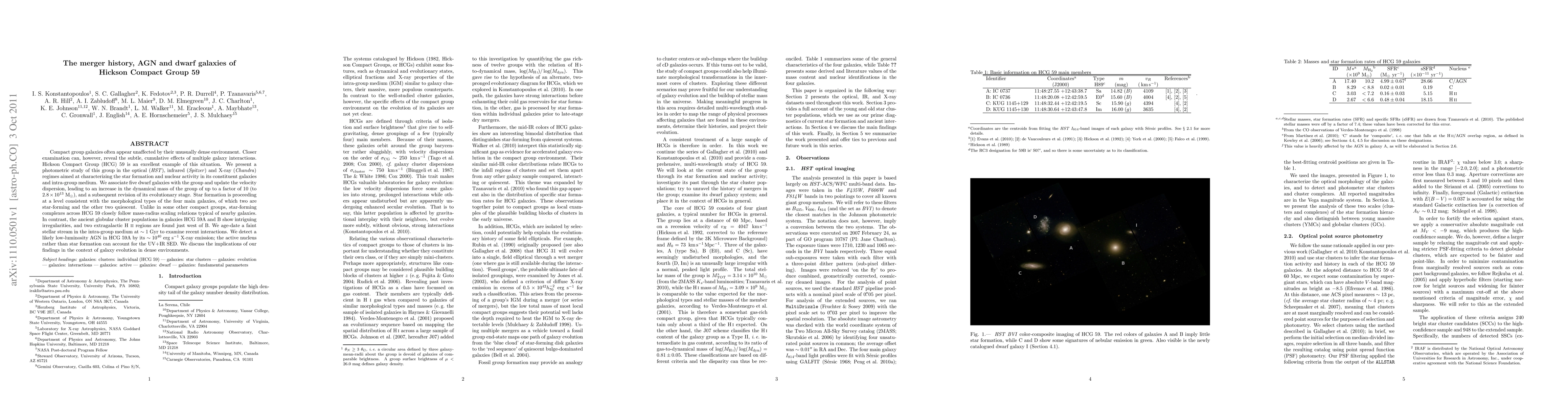 This study examines Hickson Compact Group 59, revealing significant star formation and nuclear activity in its galaxies, with an increased dynamical mass up to 10 times greater. The group's star-forming complexes align with typical mass-radius relations, while ancient globular clusters exhibit irregularities, suggesting complex evolutionary dynamics.
