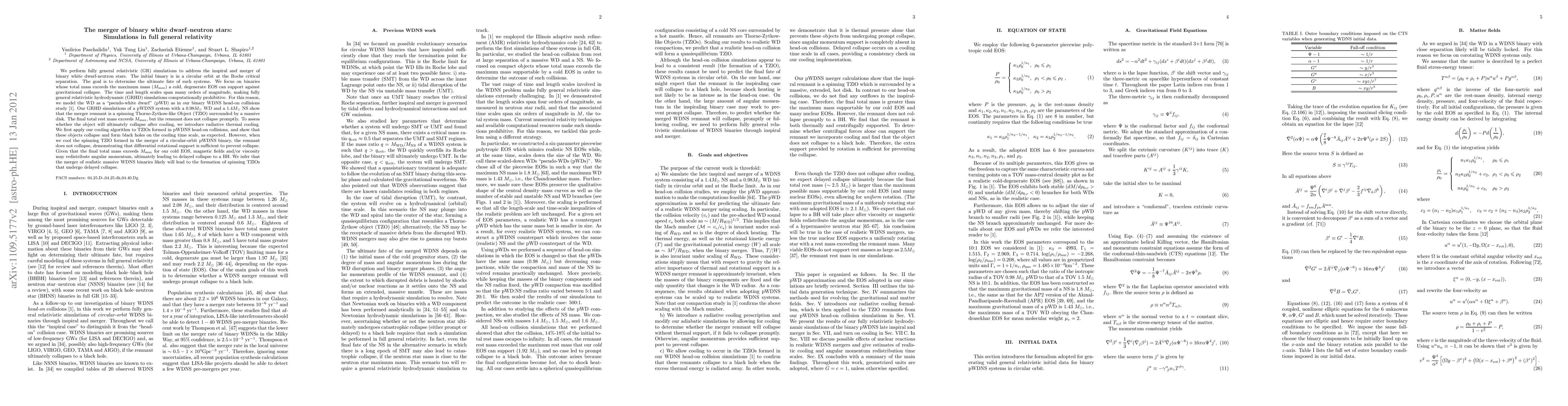 This paper presents fully general relativistic simulations of binary white dwarf-neutron star mergers, finding that the merger results in a spinning Thorne-Zytkow-like Object surrounded by a massive disk. The remnant does not collapse promptly, suggesting that differential rotational support may prevent immediate collapse.