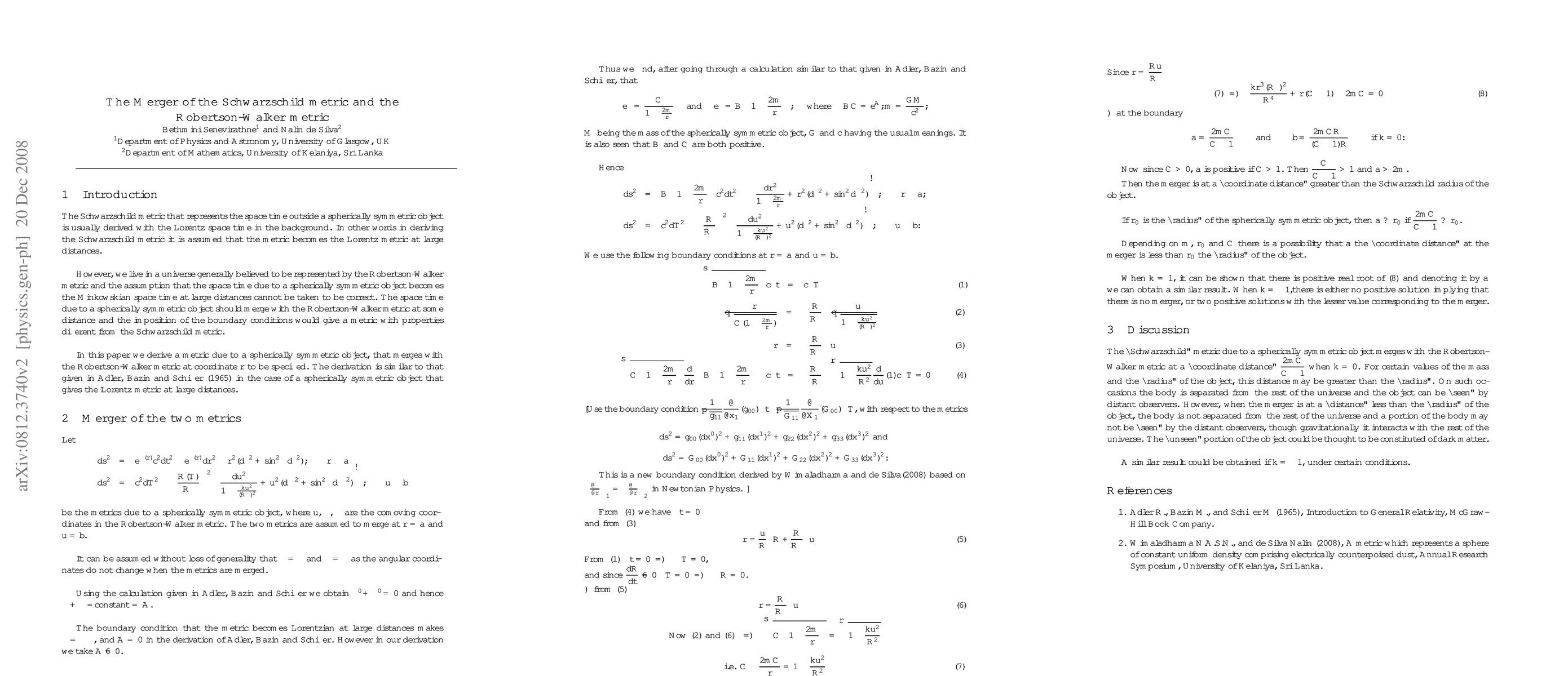 This paper merges the Schwarzschild metric for a spherically symmetric object with the Robertson-Walker metric, revealing that under specific conditions, the merger occurs within the object's radius, maintaining its connection to the universe.