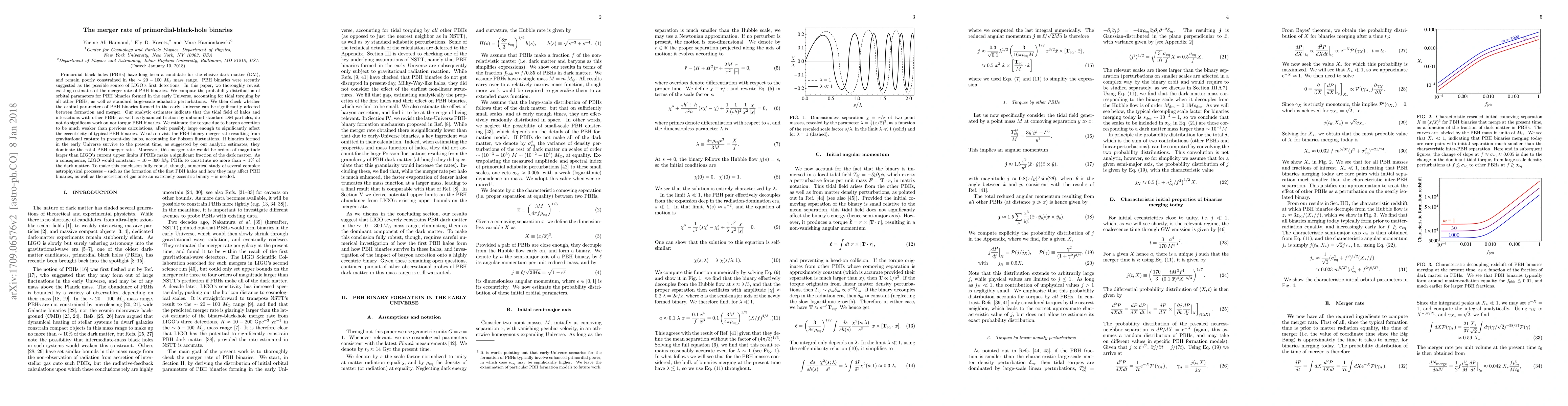 This paper revisits the merger rate of primordial black hole binaries, finding that binaries formed in the early Universe likely dominate the merger rate. It concludes that LIGO's current upper limits could constrain the fraction of dark matter made up of ~10-300 Msun PBHs to less than ~1%, though robust conclusions require further numerical studies on complex astrophysical processes.
