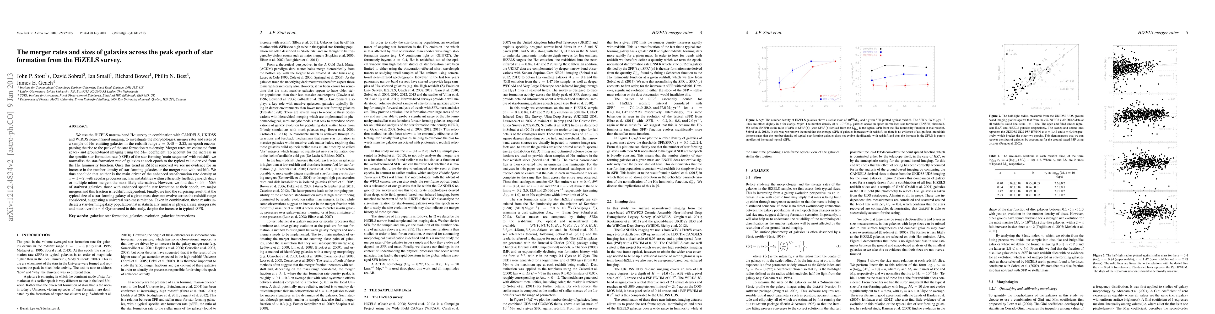 This study uses the HiZELS survey to analyze the merger rates and sizes of star-forming galaxies from z=0.40 to 2.23, finding no increase in merger rates or galaxy number density with redshift. Instead, secular processes are likely driving the enhanced star-formation rate, while starburst galaxies show a consistent major merger fraction.